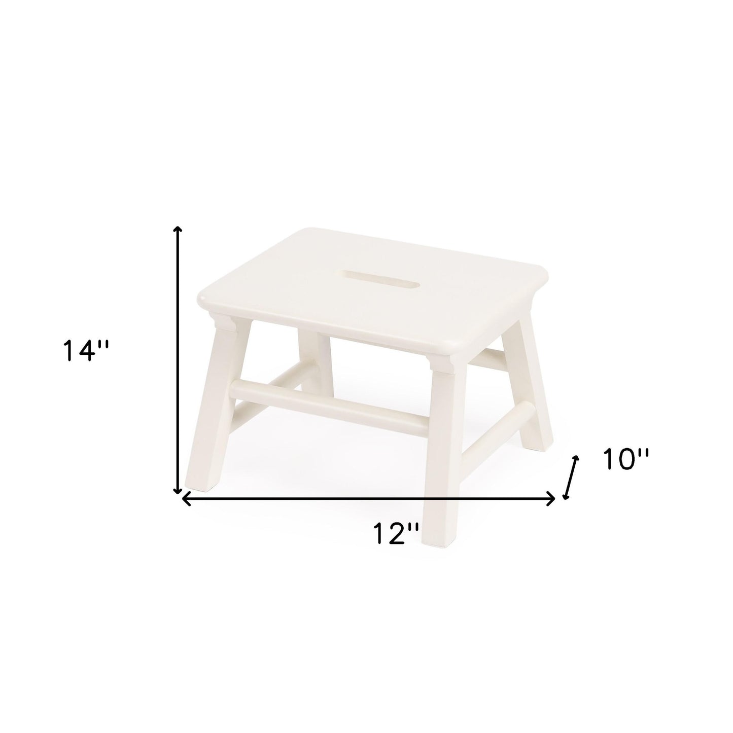 Utilize this Classic White Step Stool wherever you might need a little step up. Artisan-crafted, this stool was designed to be practical and not be obtrusive. Made from wood and veneers, and finished in a creamy classic white this stool will be handy in the bedroom, bathroom, playroom. Can even be used as additional seating in a pinch! 10" x 14" x 12"