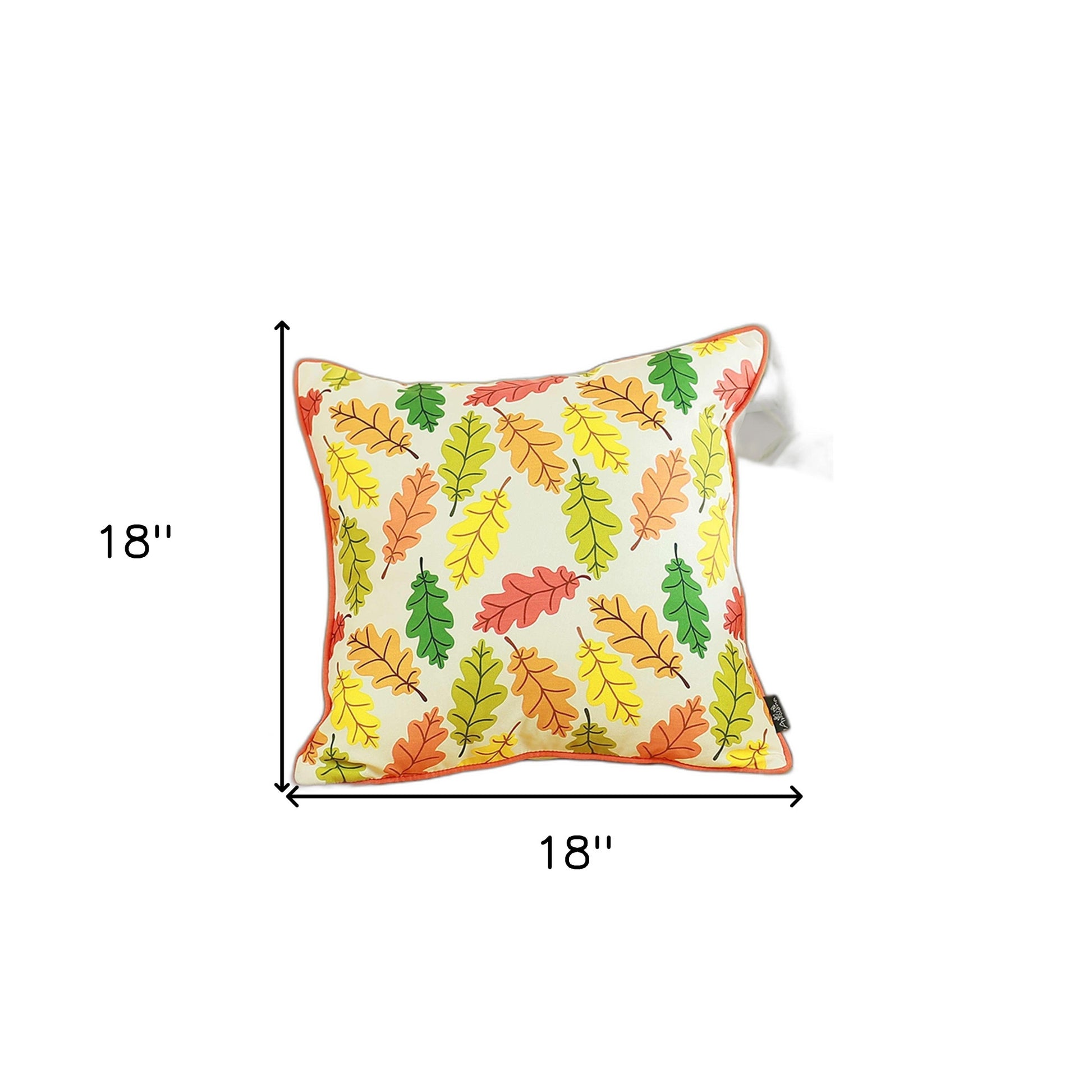 The playful tones of this Colorful Falling Leaves Decorative Throw Pillow will spruce up your living space with a festive mood. With beautifully printed autumn leaves in muted shades of red, yellow, orange, and green to create an alluring contrast over the white base. The soft red piped edging completes the look with a luxurious finish while the hidden zipper closure all-around offers a smooth feel on the touch. It also comes with a soft poly filling for a fluffy appearance that provides maximum comfort. This 100% polyester brushed pillow is crafted in Turkey to ensure long-lasting durability and color intensity while being easy to clean. The fabric is chosen to be of the highest quality and product safety as is it adheres to OEKO-TEX Standard 100 certification. Place this stunning pillow against a bright-toned décor to make any modern or casual space come alive in an instant. 18” x 18” x 1”