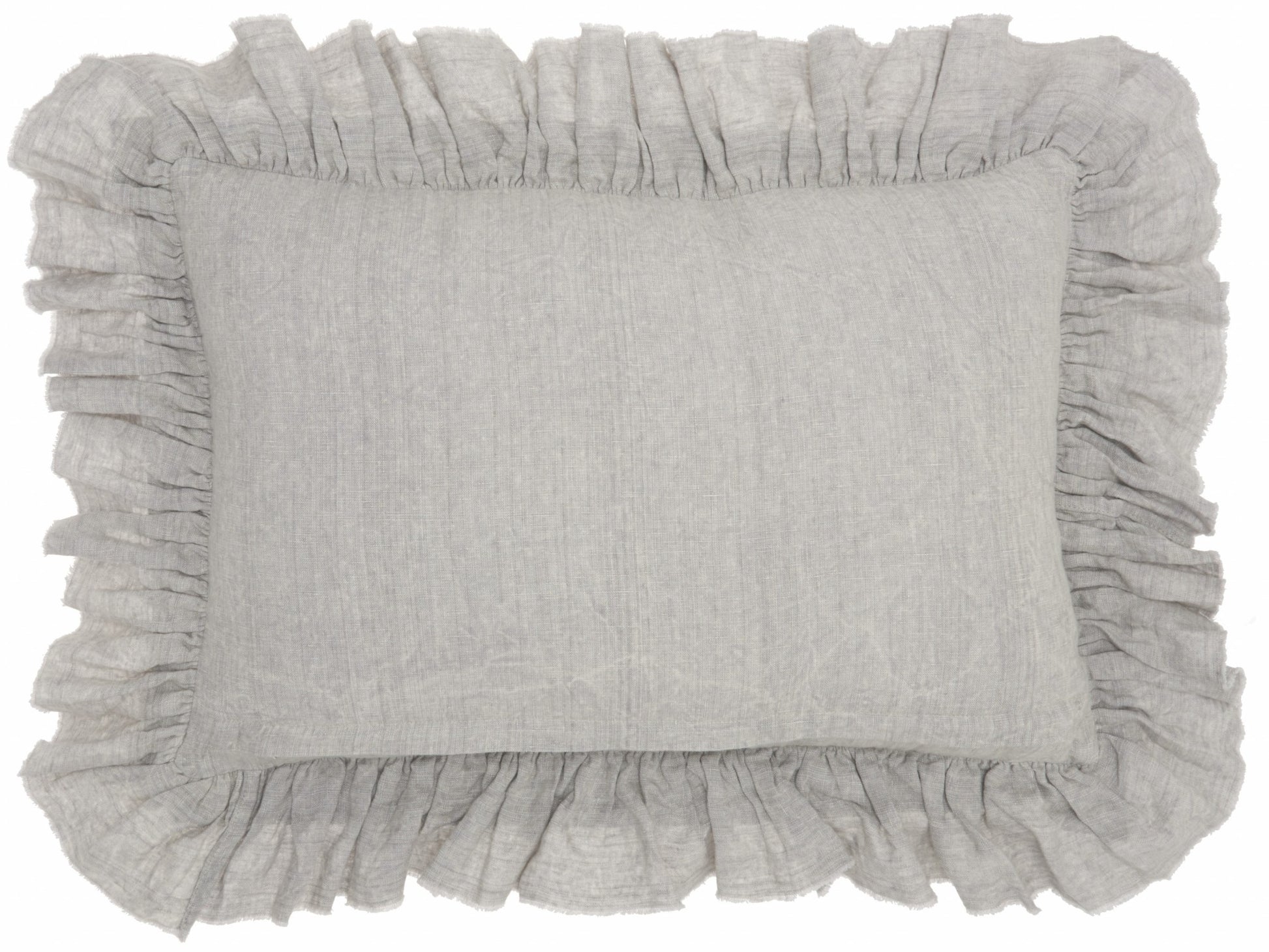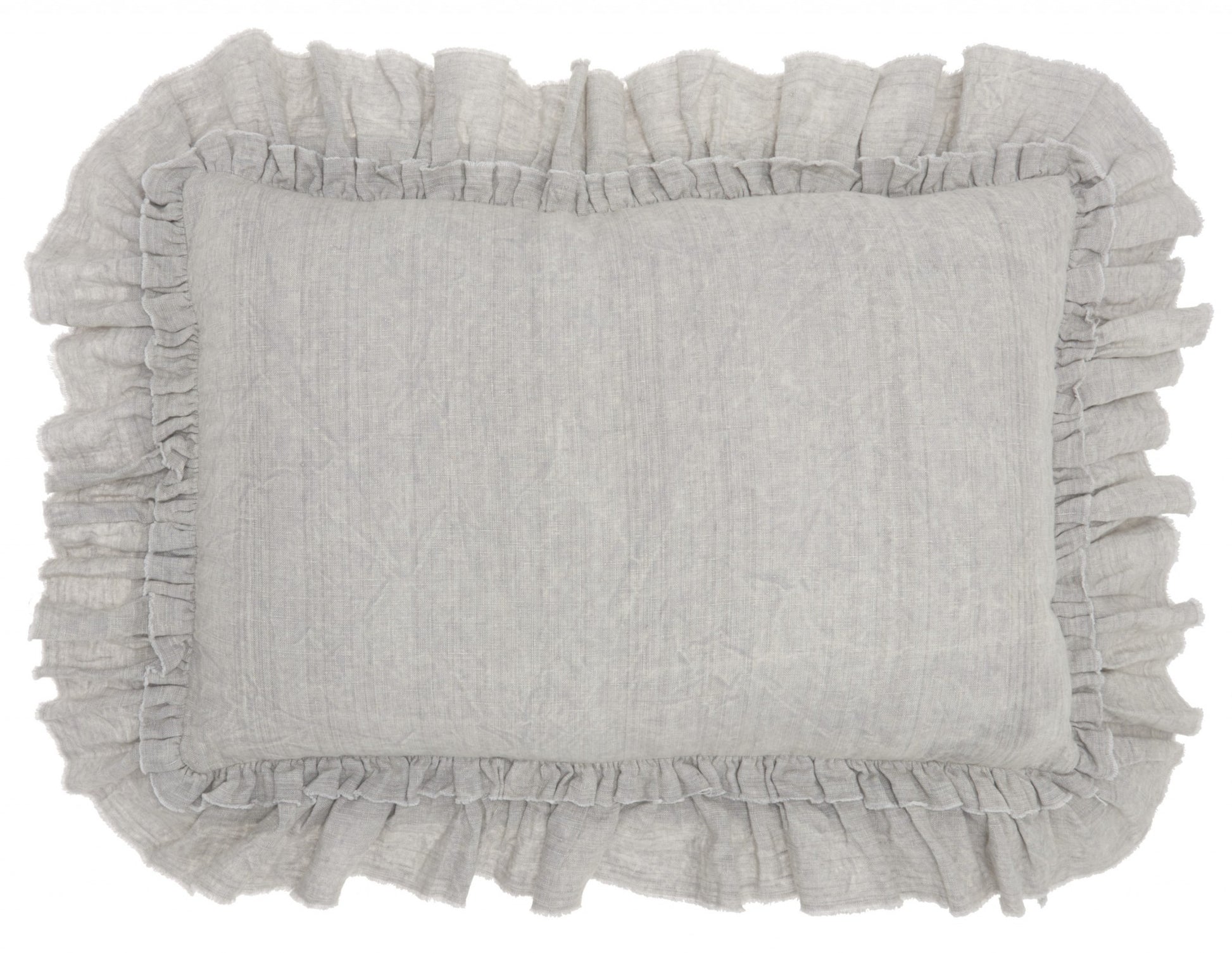 Dainty Ruffle Edged Light Gray Lumbar Pillow