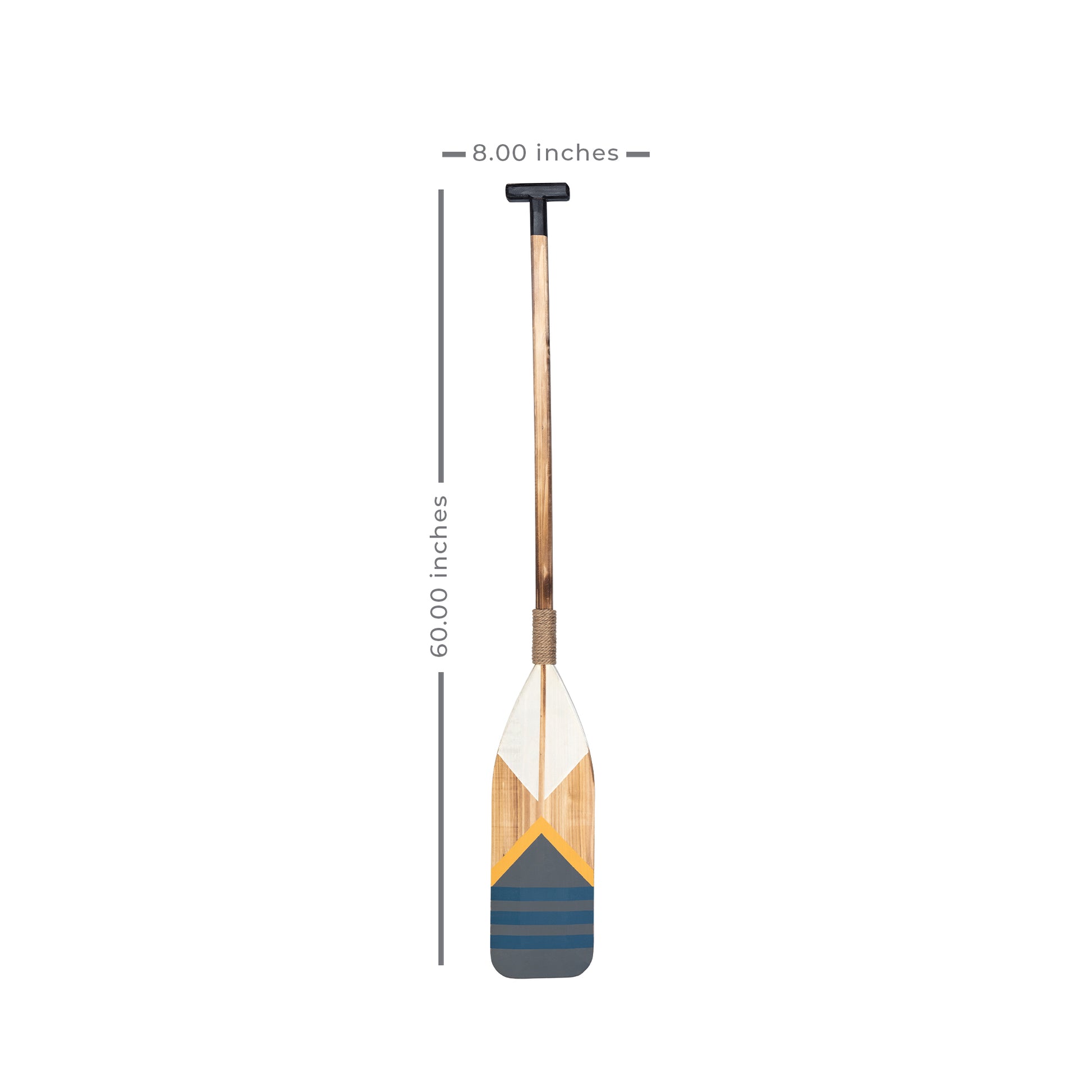 This marine-themed decor takes on the form of a wooden boat paddle, which is detailed with vivid tones and bright colors. The whole piece has a neutral distressed wood finish, making it an excellent wall accessory to match your coastal decor pieces.
