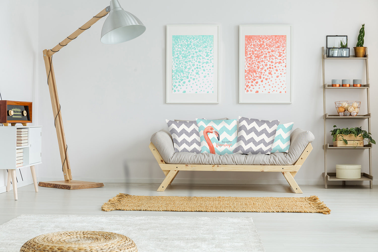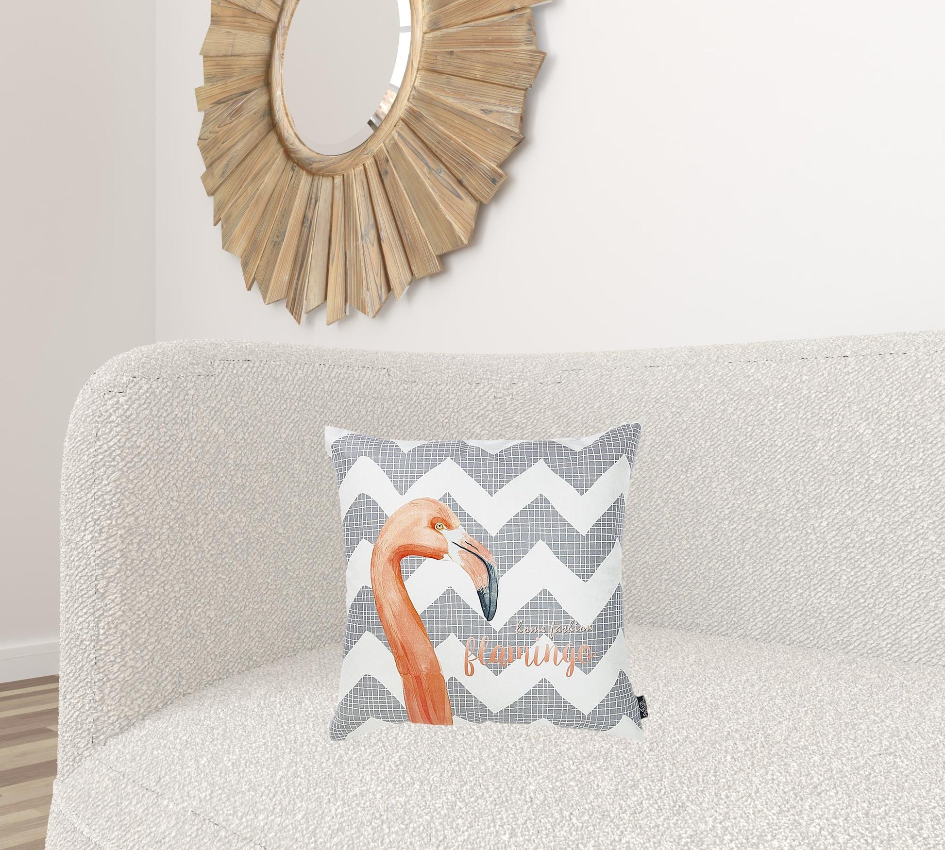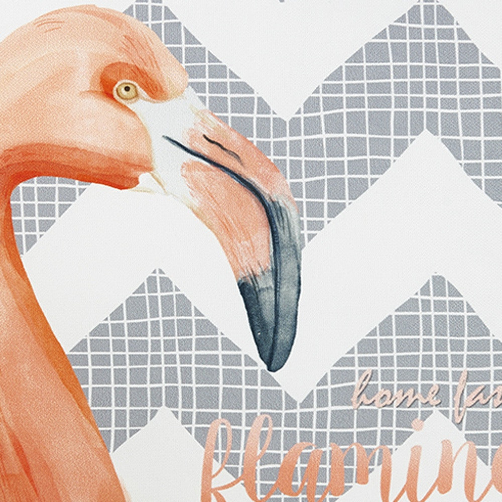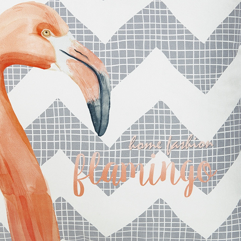 Easily update and refresh your home with this colorful Flamingo and Gray Chevron Decorative Throw Pillow Cover. Instantly upgrade your space with this throw pillow cover made with luxurious brushed polyester fabric. The cheerful and colorful patterns will add hue and style to any room. The high quality digital print is in the front, and the back side is solid white. A hidden zipper closure provides a clean and seamless look all the way around. 18" X 18"