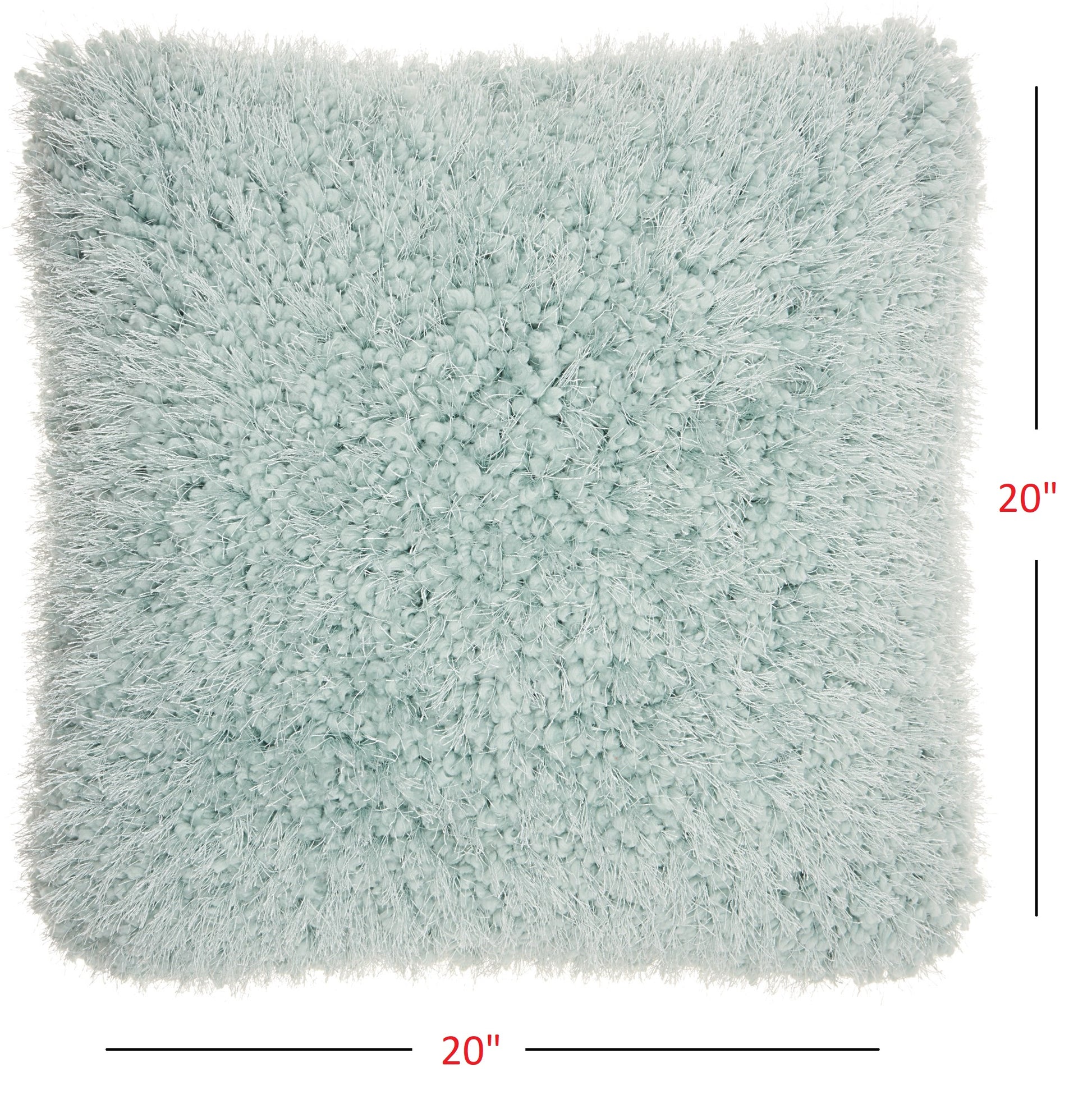 Enjoy all that comfort has to offer with this Fluffy Celadon Blue Accent Throw Pillow. The 100% Polyester fiber in non-woven casing makes for a great comfort piece. The shag fabrication gives a soft and calming exterior, adding texture to your home. The soft Celadon blue color is the perfect hue to easily style and mix and match with your other decor pieces and pillows. 4" x 20" x 20"