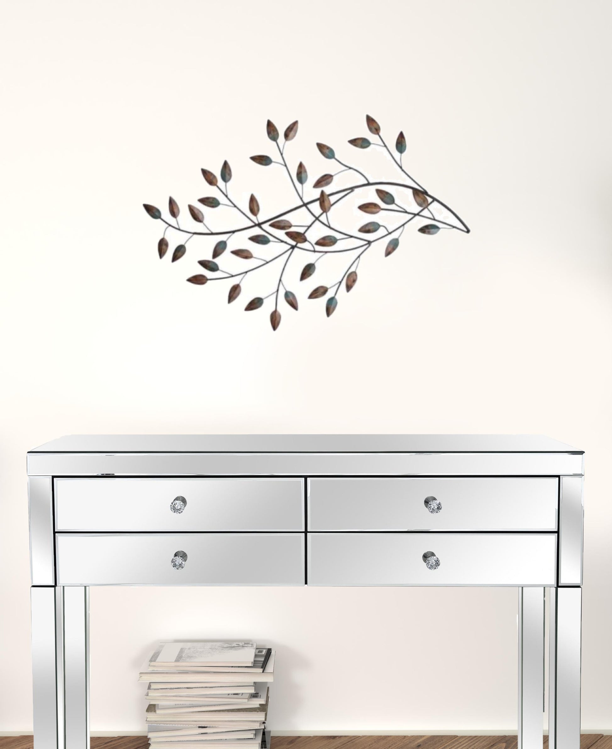 Solidify the beauty of your beloved home with this well-crafted blowing leaves wall decor. Our classic wall art is designed to create scenic atmosphere that will constantly showcase a charming piece that warms the heart. It features a stunning metal patina branch with gold leaves and brushed teal that add enduring style and look to any room. Traditional style 100% Metal Comes ready to hang Two keyholes hanging method Horizontal hanging orientation Wipe clean with damp cloth Product may have some variances in comparison to photo shown. It measures 29.5" X 0.75" X 17.5".