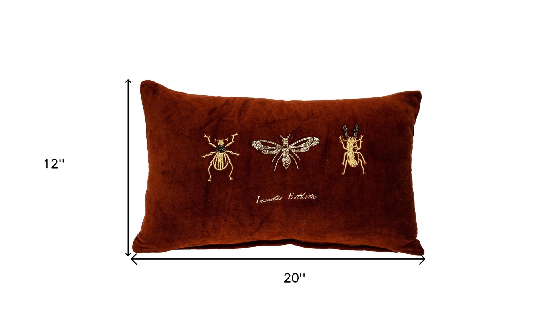 Whether you are an insect lover or just love things that are quirky and fun, this Golden Insects Velvet Throw Pillow will certainly impress you. This is a super soft rusty brown velvet throw pillow that comes with the embroidery of insects in gold. The gold embroidery looks luxurious against the solid dark brown backdrop and the pillow will make any room in your house look chic. 12” x 20” x 4”