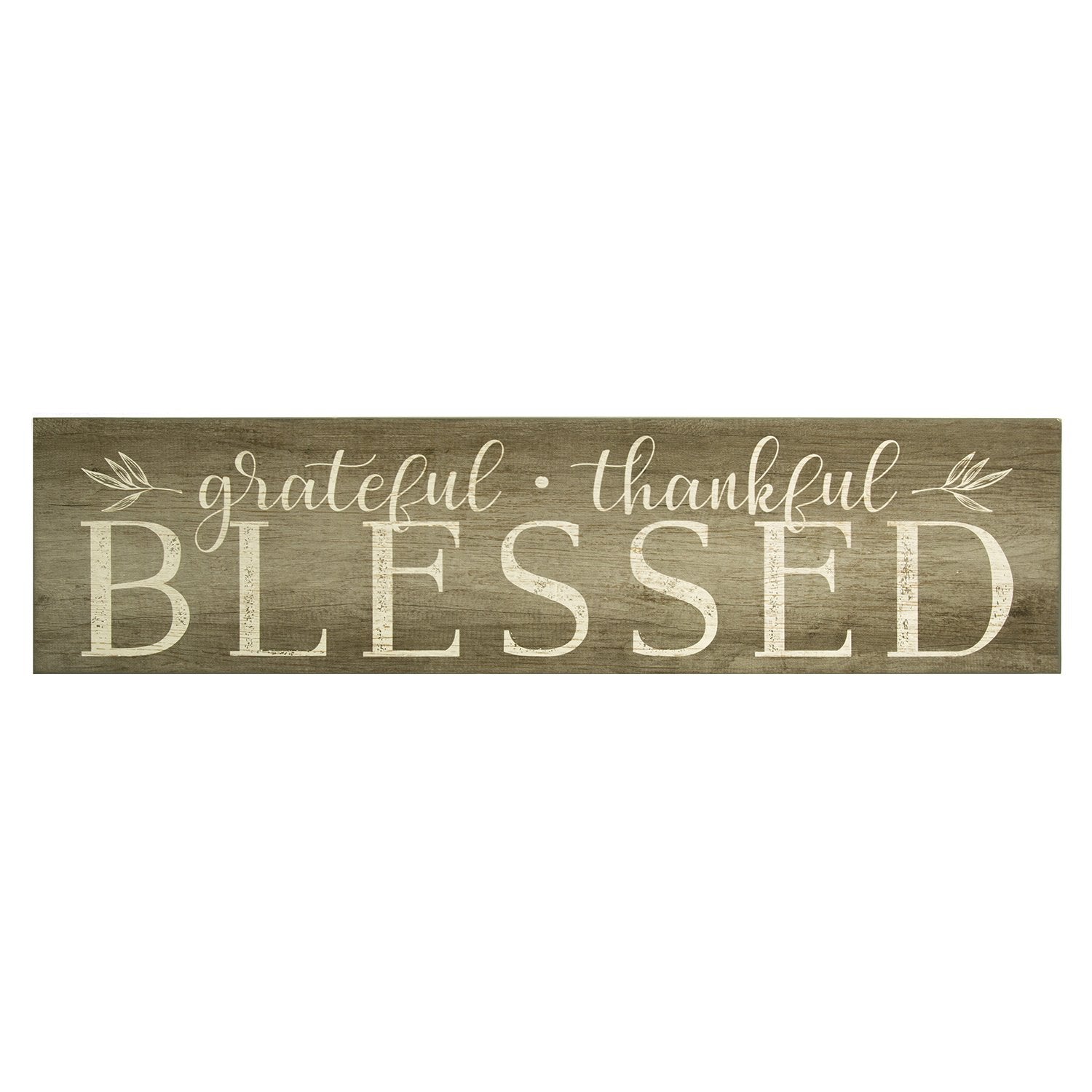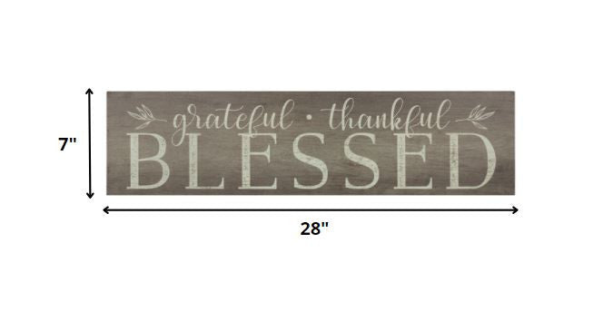 Imbibe the habit of showing gratitude for everything in your life with this perfect work of art. The typography art is artistically printed on MDF with a distressed wood grain background bearing an inscription Grateful, Thankful, Blessed. Add this piece to your gallery wall to complement your bedroom or living room decor. This wall art is handcrafted and painted by our talented skilled craftsmen. Typography style 100% MDF Comes ready to hang - Product may have some variances in comparison to photo shown Two D-rings hanging method Horizontal hanging orientation Wipe clean with damp cloth. It is 28" X 1.5" X 7".