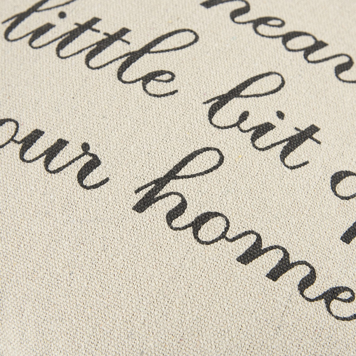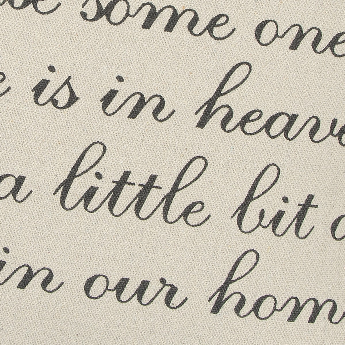 Give a nostalgic tribute to your loved one with this beautifully emotional Gray Cream Heaven In Our Home Throw Pillow in your living room. The memorial statement in gray is flaunted over a cream background in a pretty cursive font for a modern and sophisticated appeal. This pillow is a great accent piece to remember a family member not by our side anymore but in our heart’s heaven forever. The lightly textured cotton canvas makes this poly-filled pillow soft and durable to last for a long time and meet the aesthetics of multiple design styles. The pillow features a solid coordinating back with a hidden zipper closure for convenience. Perfectly balanced in tones and textures with a touching sentiment, this decorative throw pillow is meant to add a sense of personality to your space. 20” x 20” x 6.25”