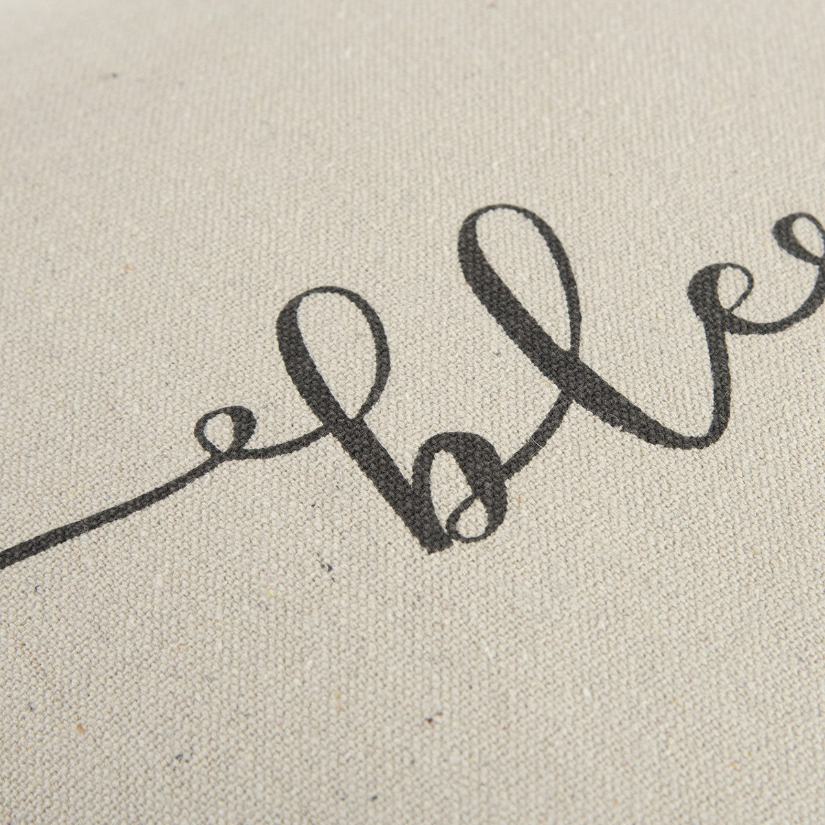 A perfect fit to blend well amidst modern or casual decors, this Gray Taupe Canvas Blessed Throw Pillow is skillfully designed with a modern edge. Expressing a sense of gratefulness with the sentiment that says ‘blessed’ in a playfully cursive font, the pillow is perfectly balanced with gray text over a taupe-toned base. The lightly textured cotton fabric gives a cozy feel on the touch while the self-flange edges prevent fraying, making the pillow a suitable accent for a range of interior themes. This poly-filled pillow features a removable cover for easy cleaning. Enhance the modern aesthetics of your living room with the addition of this beautiful throw pillow on the sofa or couch. 20” x 20” x 6.25”