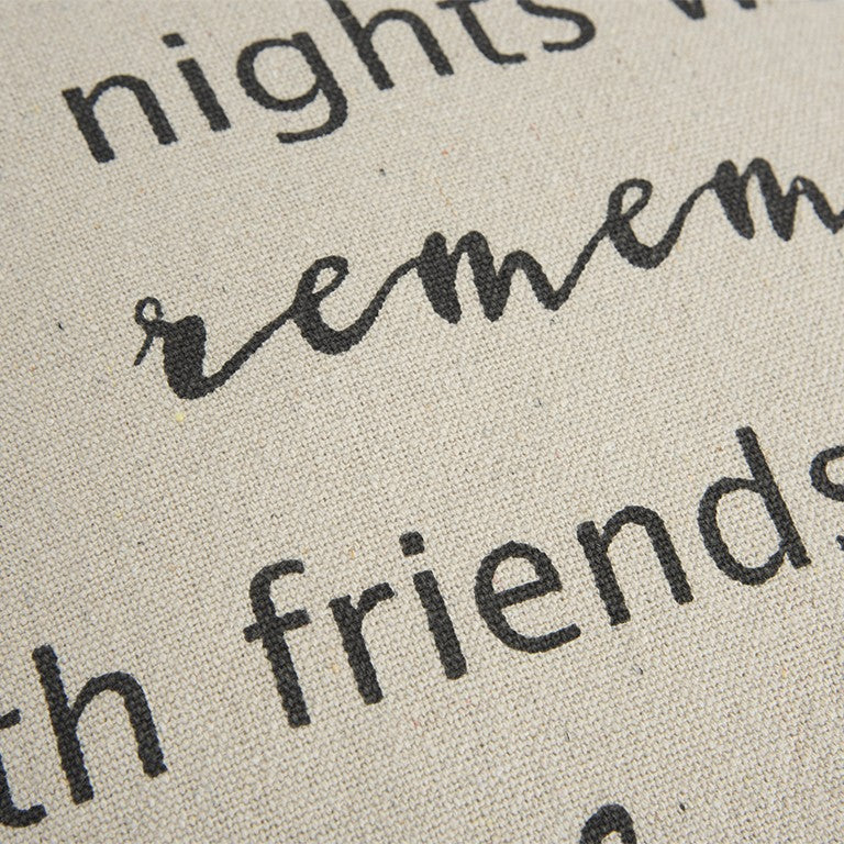 Reminisce the good old days with friends as you bring home this Gray Taupe To Nights Throw Pillow to showcase in your living room. Expressing a friendship quote in a fun wordplay, the blend of plain and cursive fonts in gray creates a visual allure over the taupe background. The pillow features a lightly textured cotton base with a solid back and removable cover for ease of fill and cleaning. Induce a cheerful ambiance in your modern living space with the addition of this decorative throw pillow that will make you relive the lovely memories with friends. 20” x 20” x 6.25”