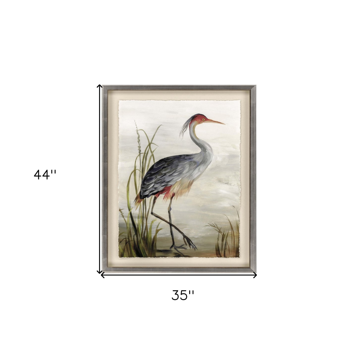 The grey heron framed art silver picture frame print wall art is the perfect decorative accessory for your home. This bird inspired art will be a great addition to your space. This print is a visual artistic expression that allows you to decorate your space in style. Reproduced for you on paper, this hanging decorative accent will be a trendy and fashionable way to dress your walls. Hang on your wall to add some up to date fashion and decoration. Instantly liven up your space with this art that brings color and dimension to your walls. 44 inches H x 35 inches W x 3 inches D