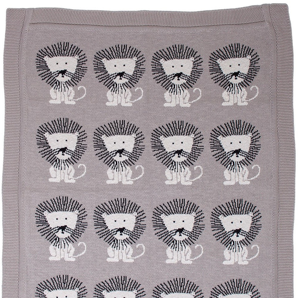 Grey Lots Of Lions Woven Knitted Baby Blanket