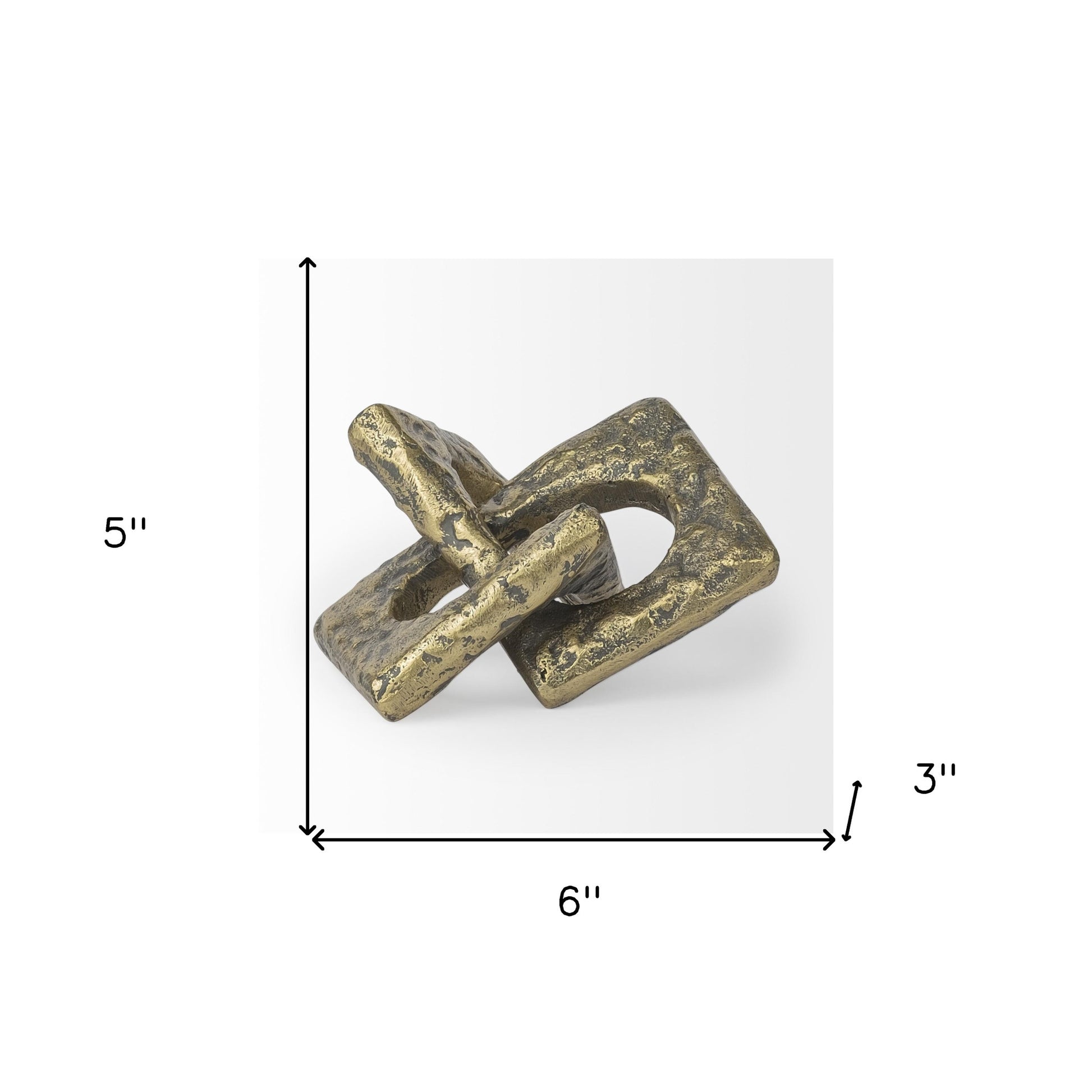 The perfect mix of modern deisgn in an artisan vintage style, this Handcrafted Rustic Gold Large Abstract Sculpture will make the perfect addition to your home. This decor piece is made from metal and features two square shapes with circle cutouts in the middle. These two piece have a rustic and distressed hammered design that is covered with a dark golden finish and are interlinked creating a stunning contemporary decor piece. The 3D nature of this decor piece will elevate any space you decide to use it in.3" H x 6" W x 5" D
