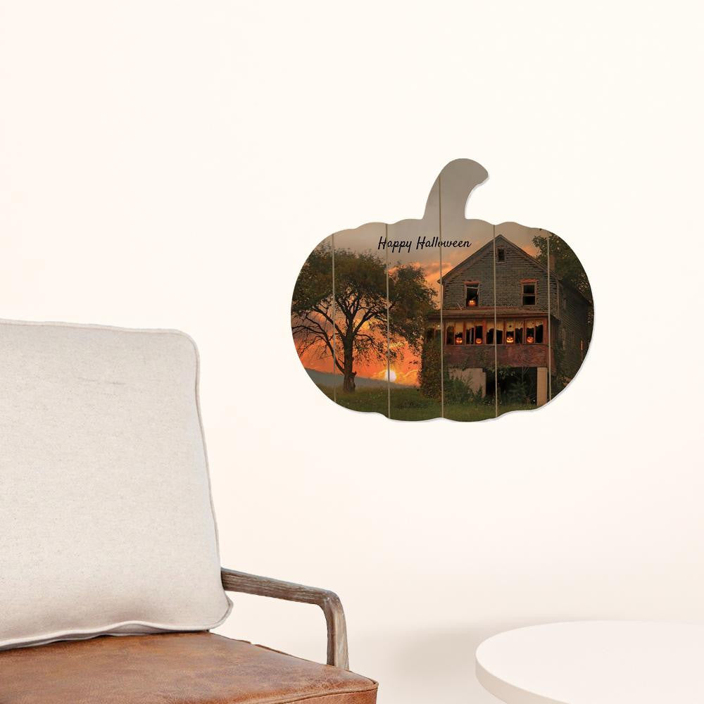 Happy Halloween Pumpkin Shaped Wood Print Wall Art