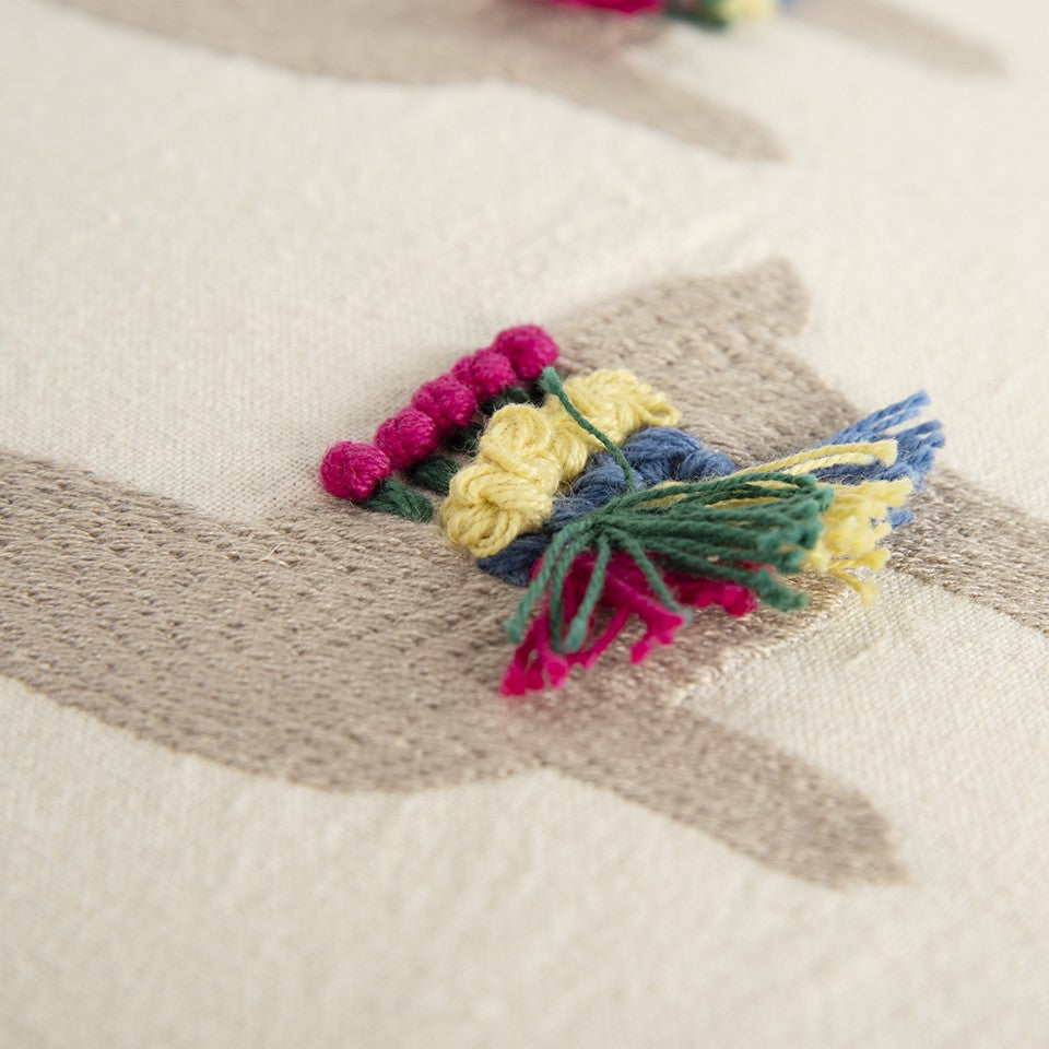 Ivory Fiesta Fun Embroidered Llamas Throw Pillow