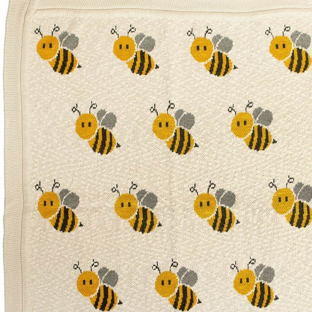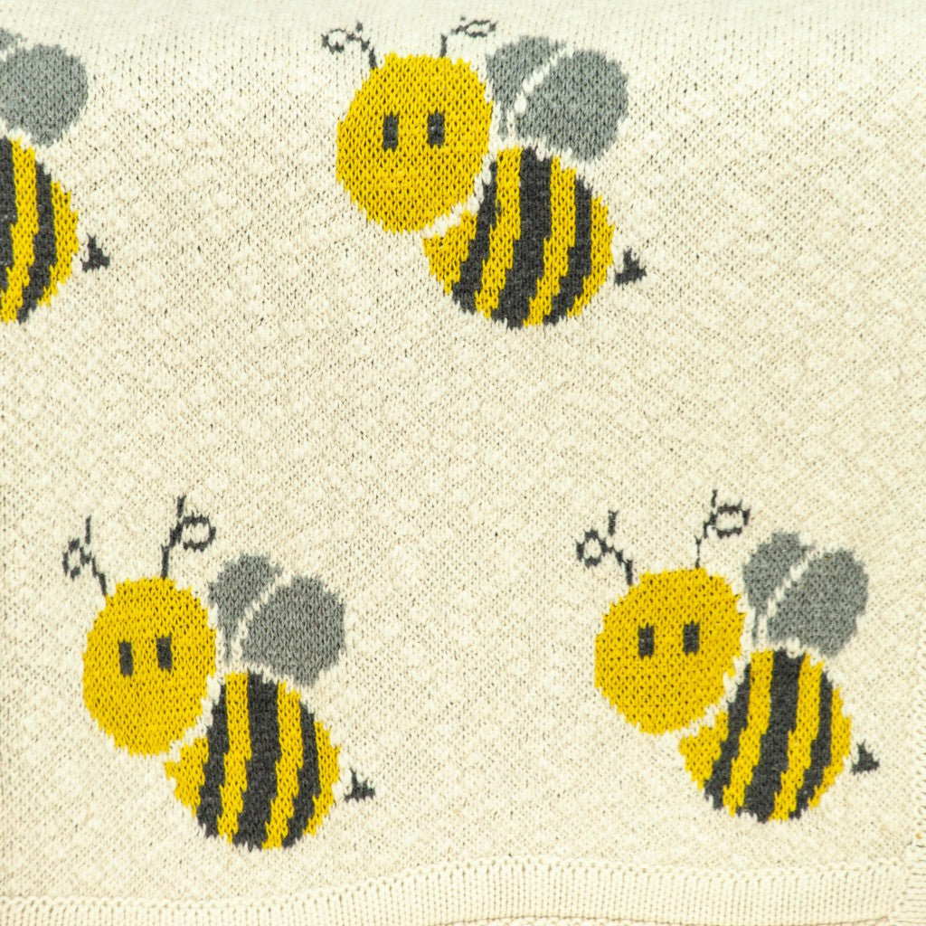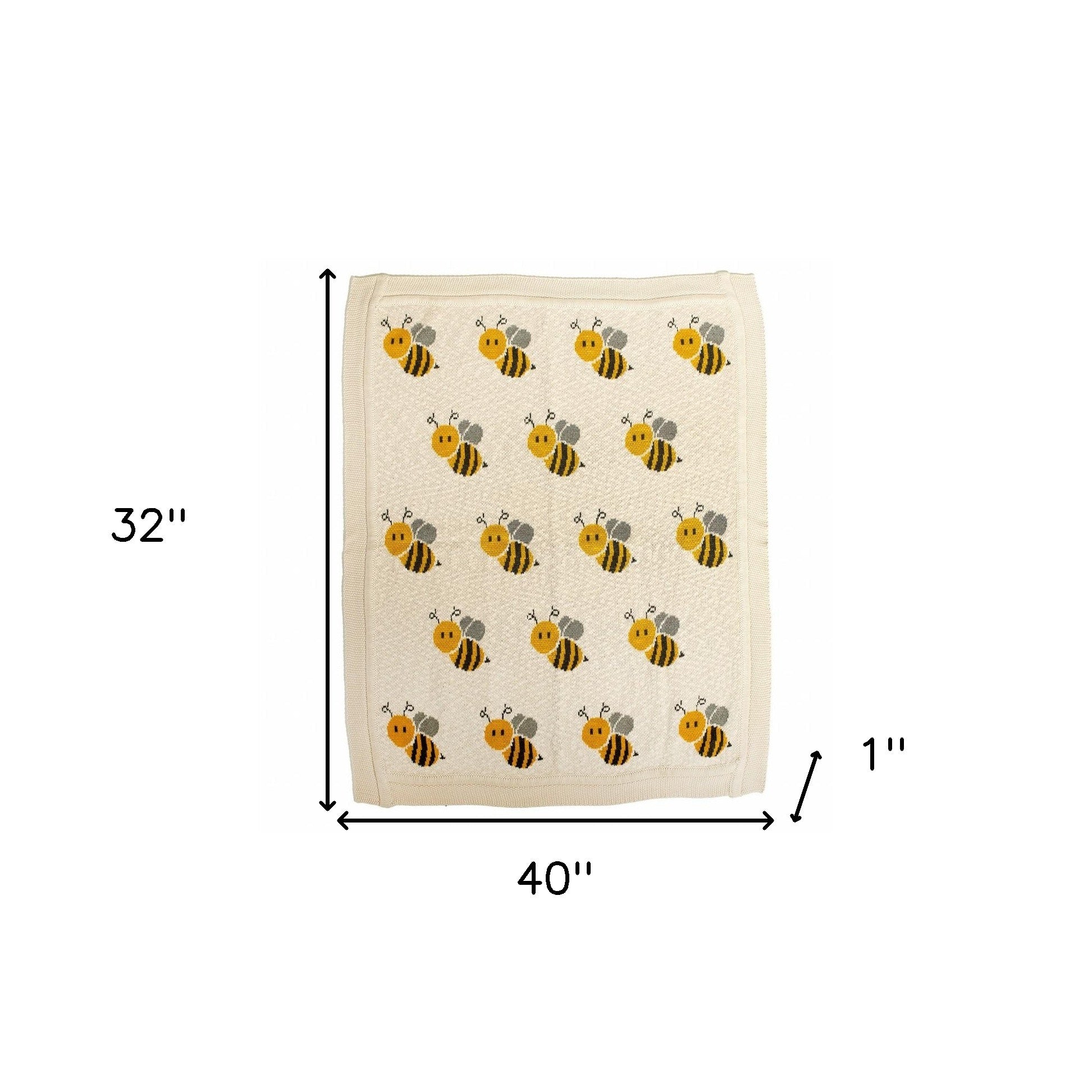 Get this assiduously crafted Ivory Honeybee Knitted Baby Blanket and express love with your baby. This beautiful baby blanket is lightweight and features little busy buzzing bees. Neutral in tone, this swaddling blanket is soft, stretchy, and made up of 100% cotton. Due to its gentleness and unique look, this stylish baby blanket is a perfect companion for your loved ones. 32" x 40"