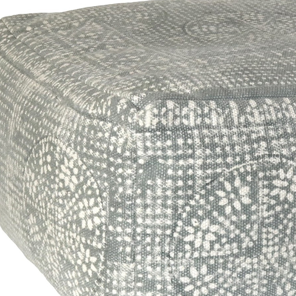 With this Light Gray Patterned Rectangle Pouf you can add a touch of contemporary design with practical utility to your home. This poof has a rectangular shape and is covered by a soft rugged fabric. The fabric has a eastern inspired pattern on it in a light gray and white colorway. The pattern gives this pouf a very unique look which will elevate any space in your home. The pouf has five separate pieces of patterned fabric that are stitched together at the edges seamlessly. Use this pouf anywhere in your home and it will look great owing to its minimal design and neutral colorway. Use it as a footrest or as an extra seating anywhere you want. 16" H x 40" W x 30" D