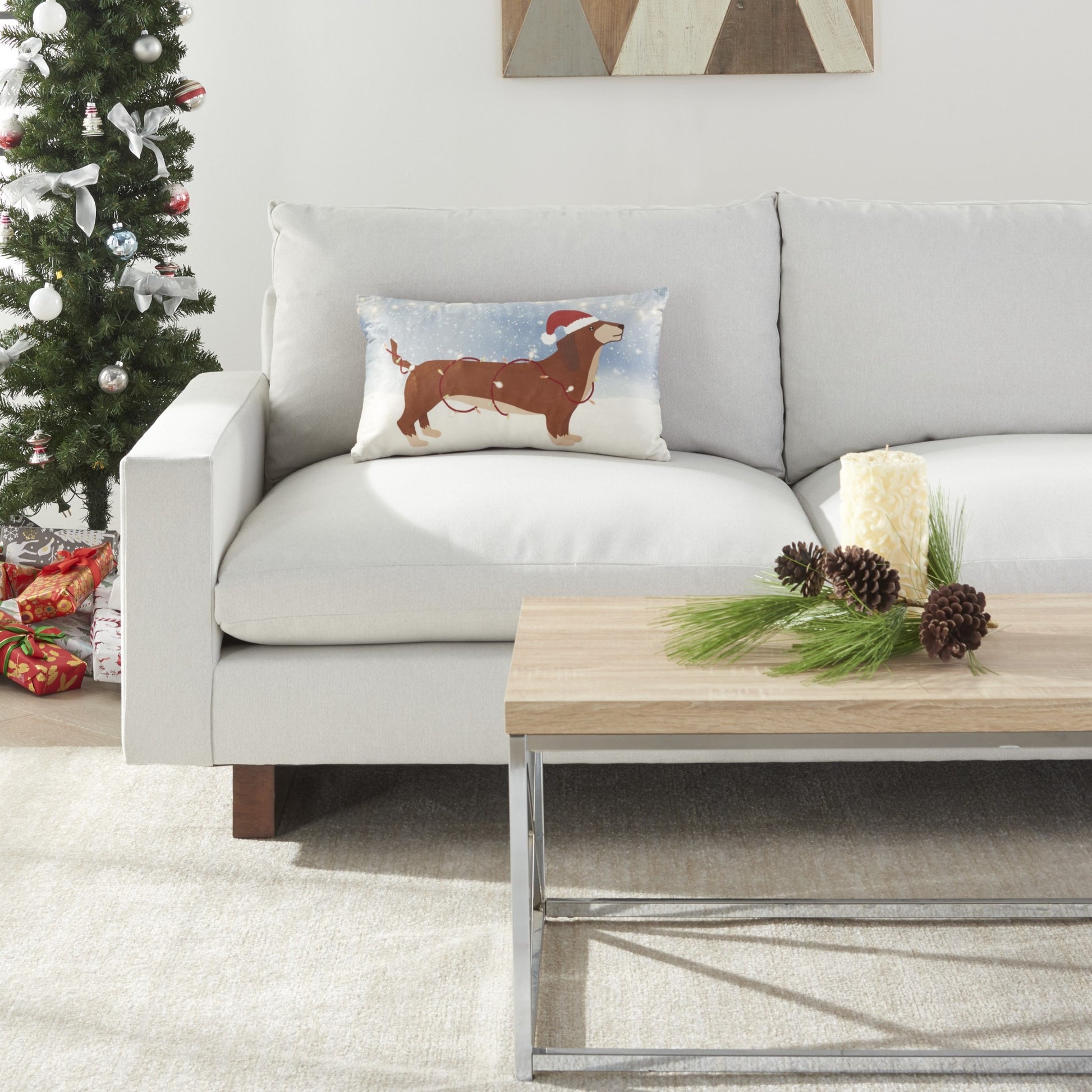 Light Up Christmas Dachshund Throw Pillow