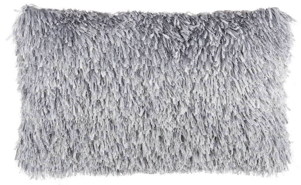 Long Grey Shag Throw Pillow