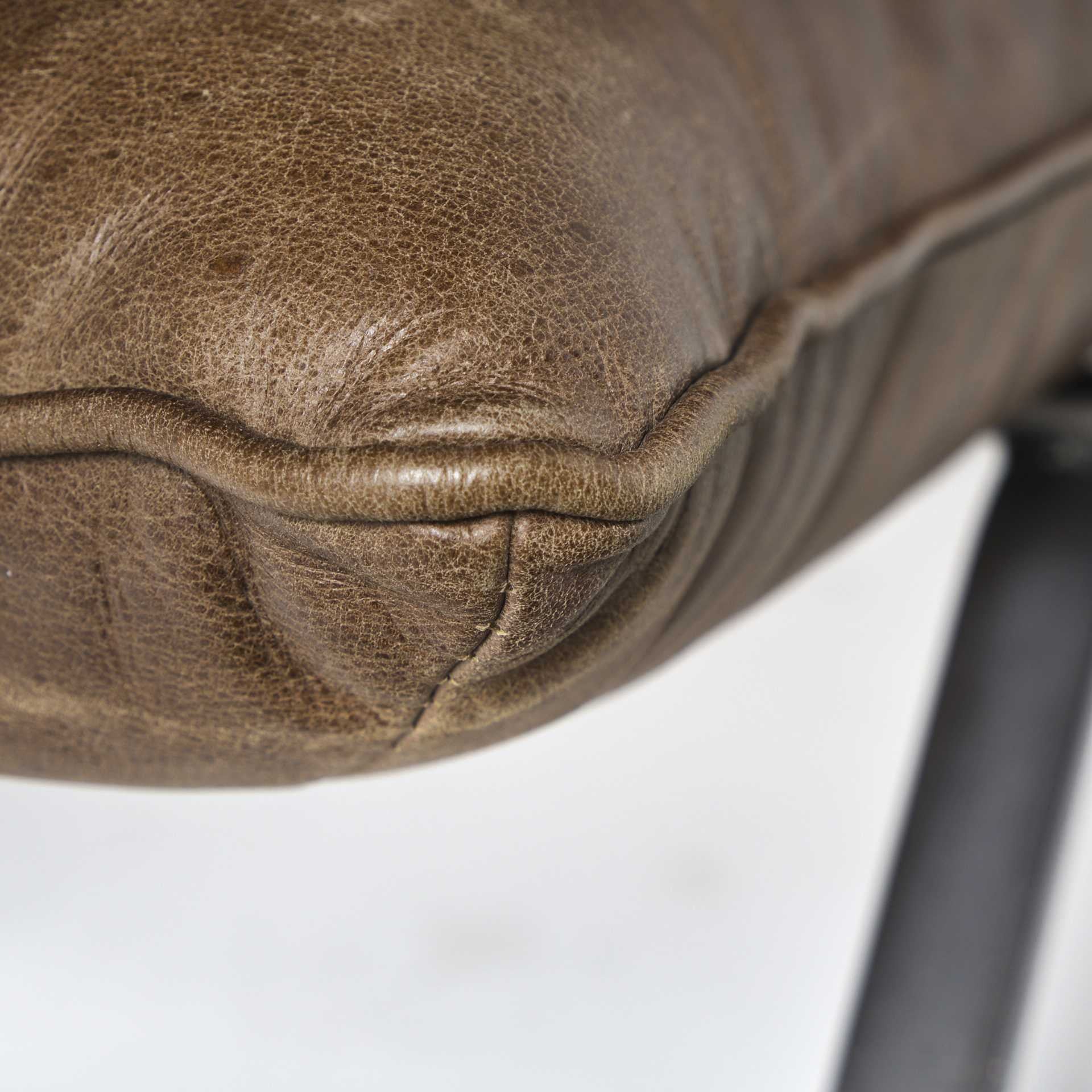 Medium Brown Leather Cushion Seat Accent Chair Solid Iron Base