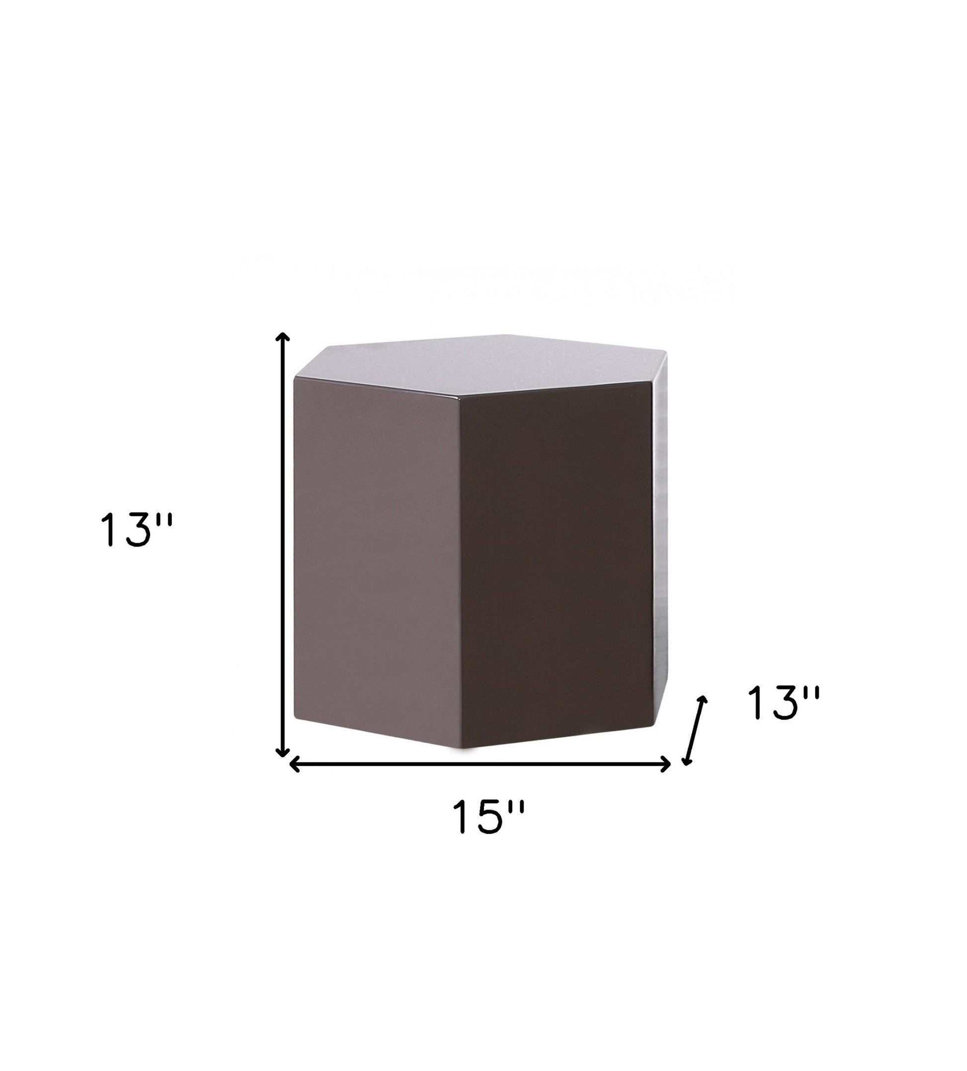 Bring this Modern Light Grey High Gloss Hexagonal End Table into your home and see how much of a difference it can make to the look and atmosphere of your space. Made from high-quality MDF, this piece is fully hexagonal in shape, which adds to its allure and makes it a fun piece of furniture to have. This table stands alone as a great end or side table but you can also pair it with multiples and group together for a larger and uniquely configured table or accent. The tabletop and sides of this piece are smooth and sleek, and it will work perfectly in the living room, dining room, bedroom, or home office. 13” x 15” x 13”