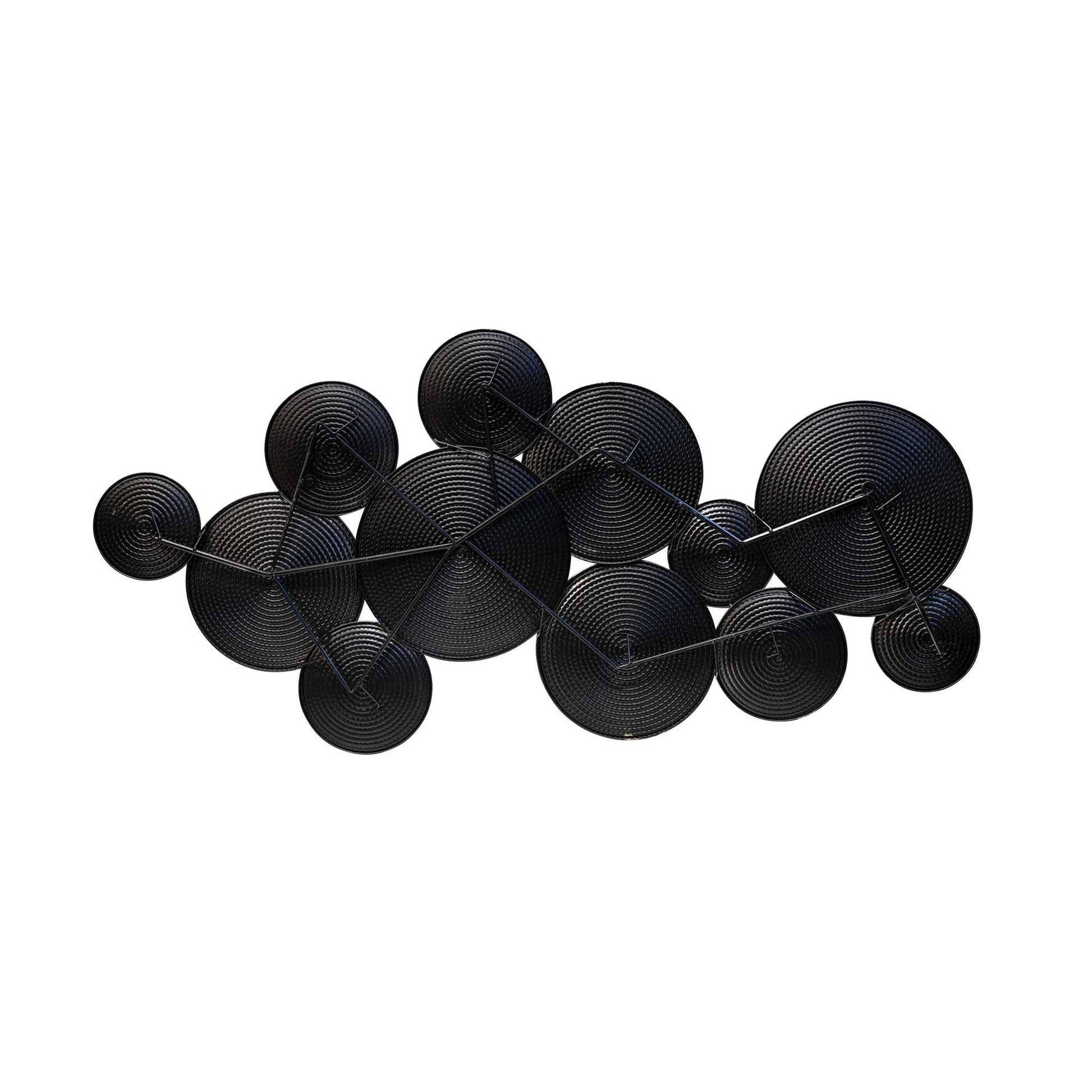 Watch your bare wall transform right before your eyes. This metal decoration features a lovely arrangement of round metal plates of varying colors. Each plate has a textured surface and a metallic finish, elevating the look of the whole piece.