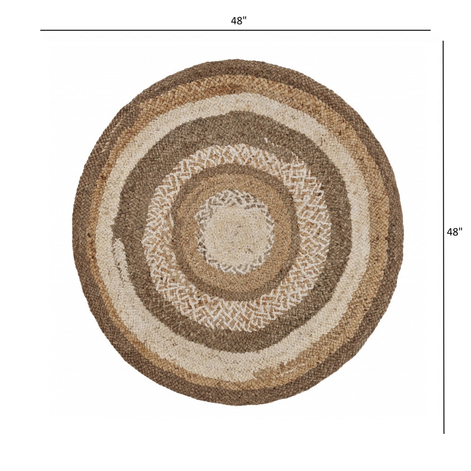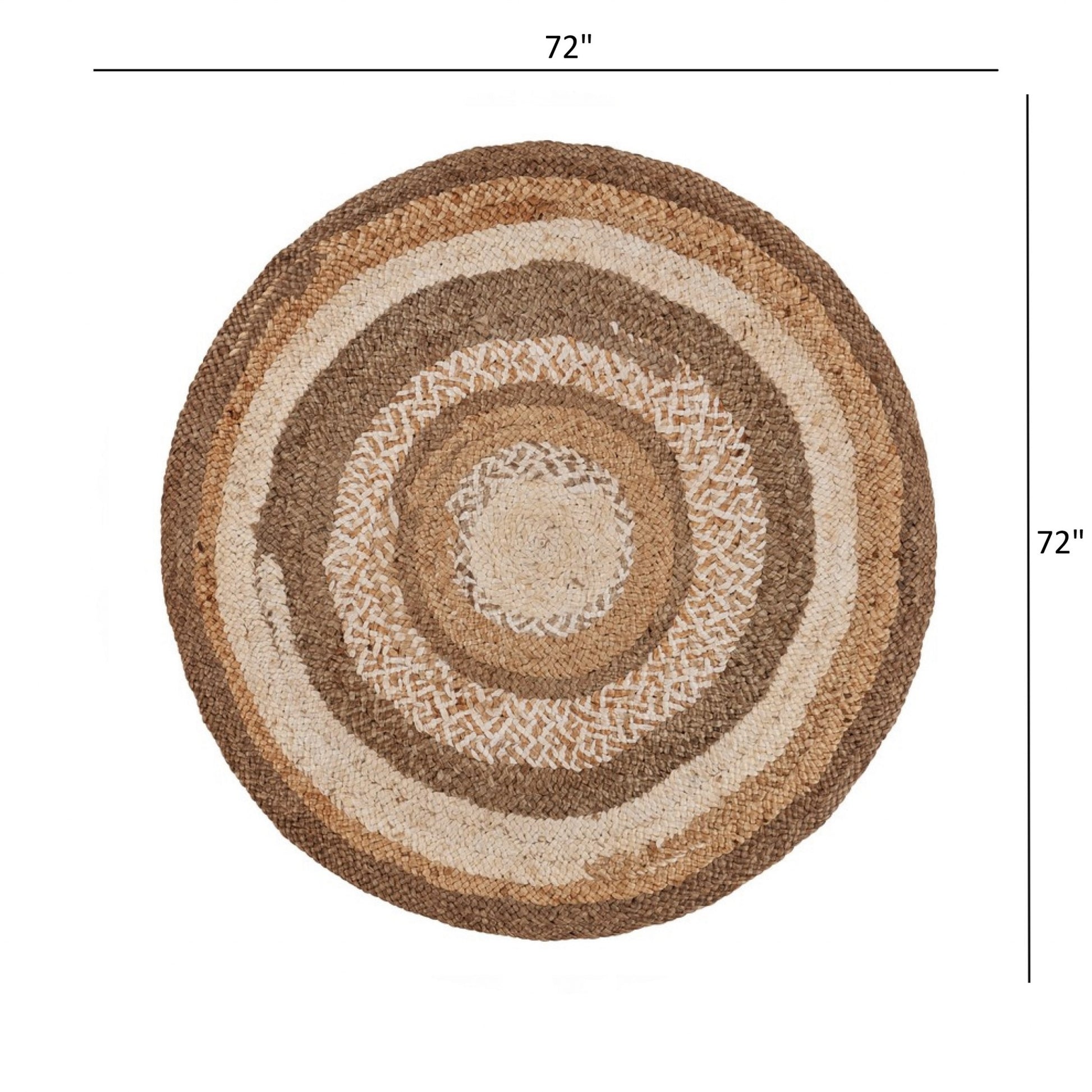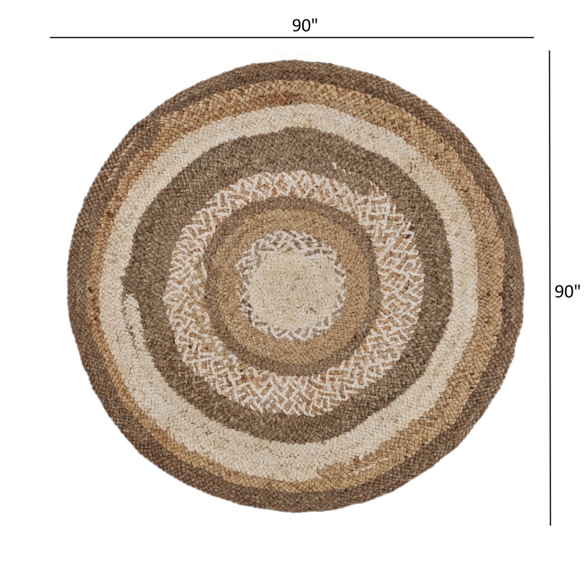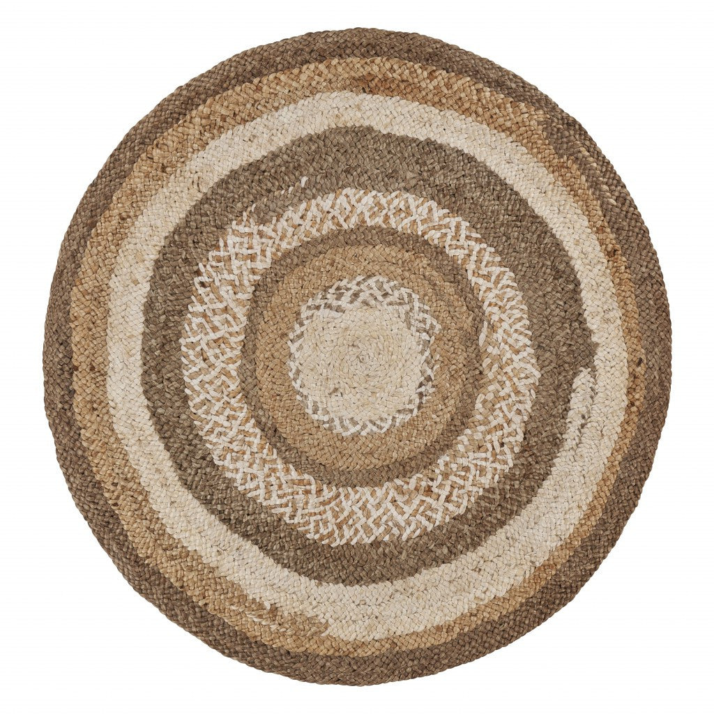 This piece will provide a wonderful enhancement to the natural tones and globally inspired pieces in your home or office. Combining natural and bleached toned jute, this hand-crafted rug is the ideal piece for a variety of spaces within your home. This multicolored balance is highlighted perfectly in the spiral central design of this round rug. Easily add this to an eclectic, cottage, or farmhouse home or be trendy and hang this piece on the wall! All jute rugs are handmade and may have slight variations in sizes due to the intricate work that goes into their creation. Bring it home today for a spectacular new addition to your space!