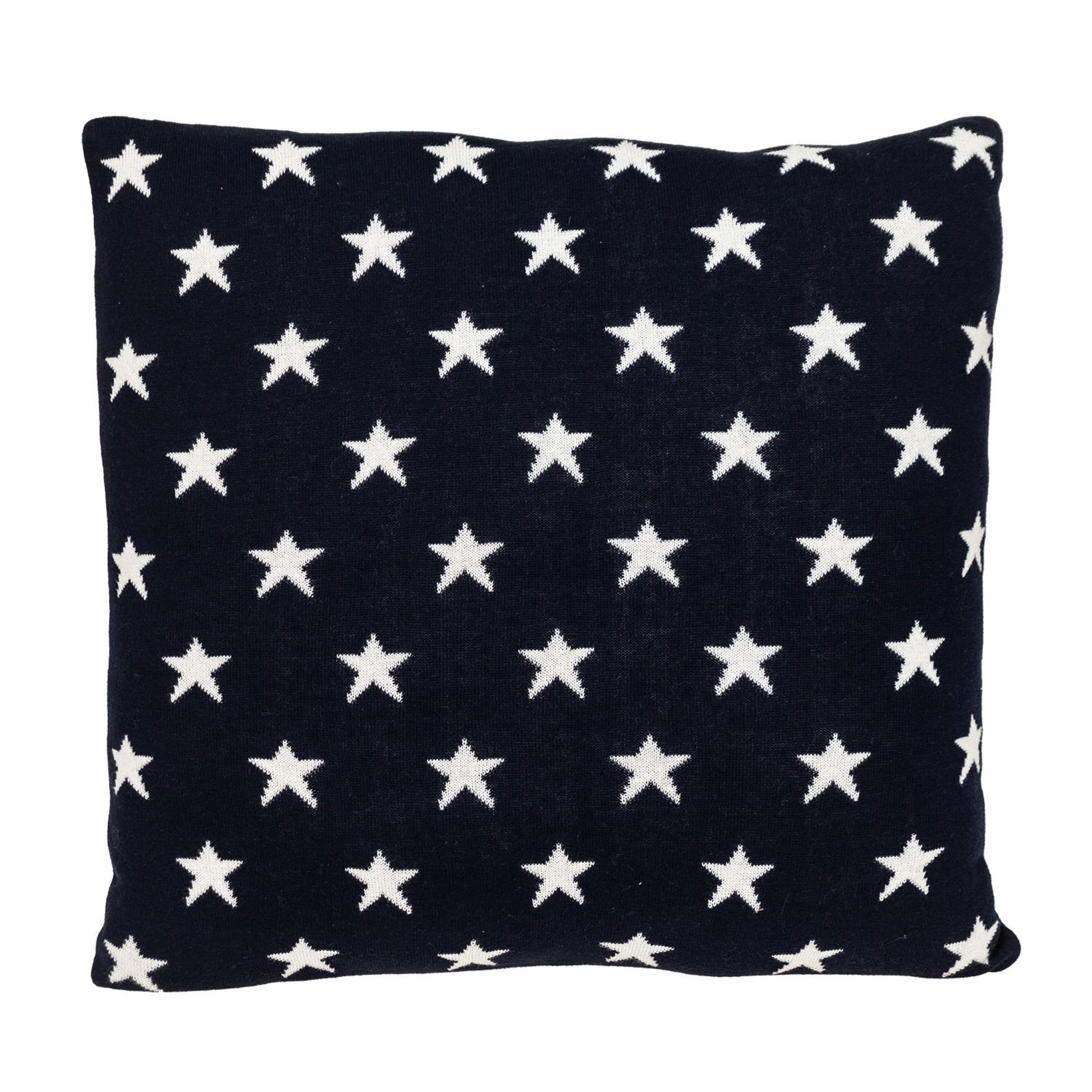 Nothing beats the feel of patriotism that you get with “God Bless America” and the Navy Blue Patriotic Throw Pillow is just what you need as an extension of your patriotism. With its classic design, this square 100% cotton knitted decorative pillow has a navy front with "God Bless America" phrase in red, and the back has white stars all over. There is a zipper closure on the edge and reversible design makes this pillow versatile decoratively. 20” x 20” x 4”