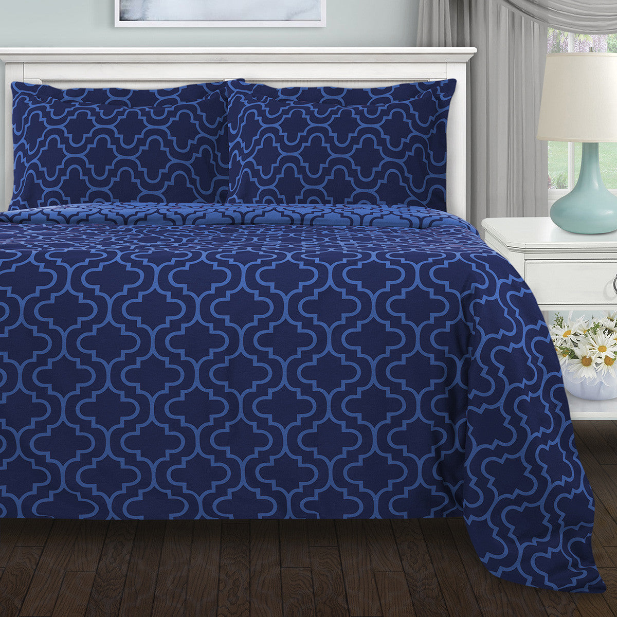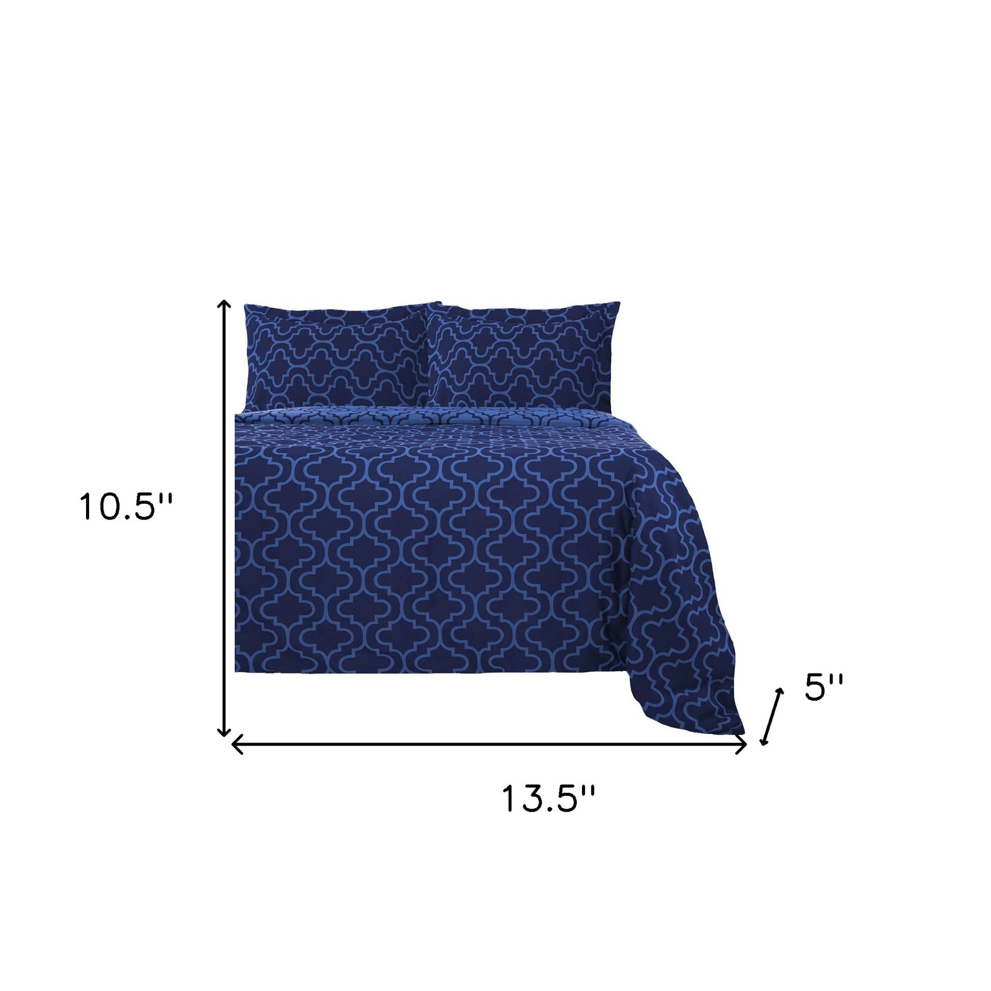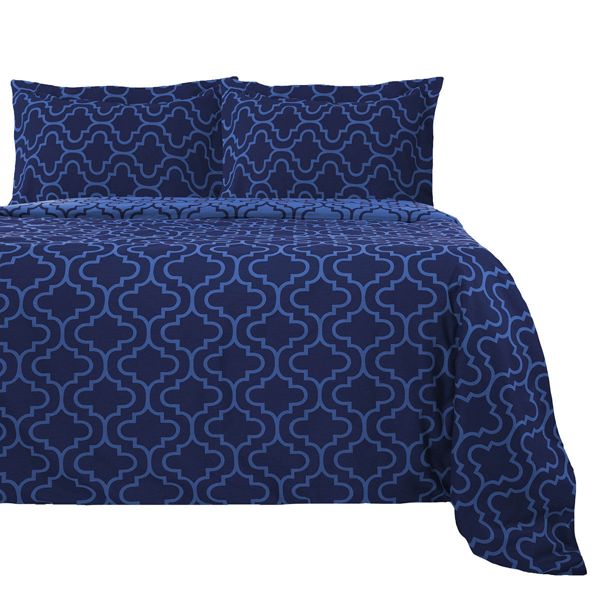 Navy Blue Queen Cotton Blend Thread Count Washable Duvet Cover Set
