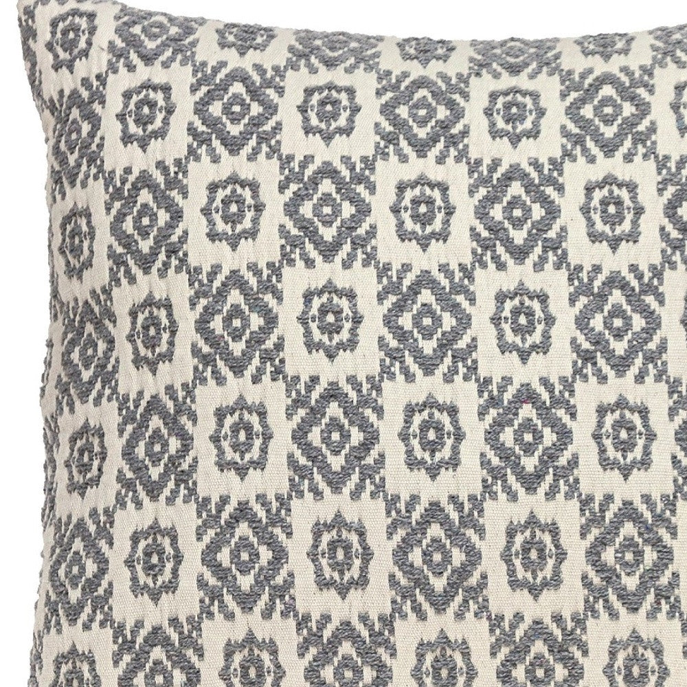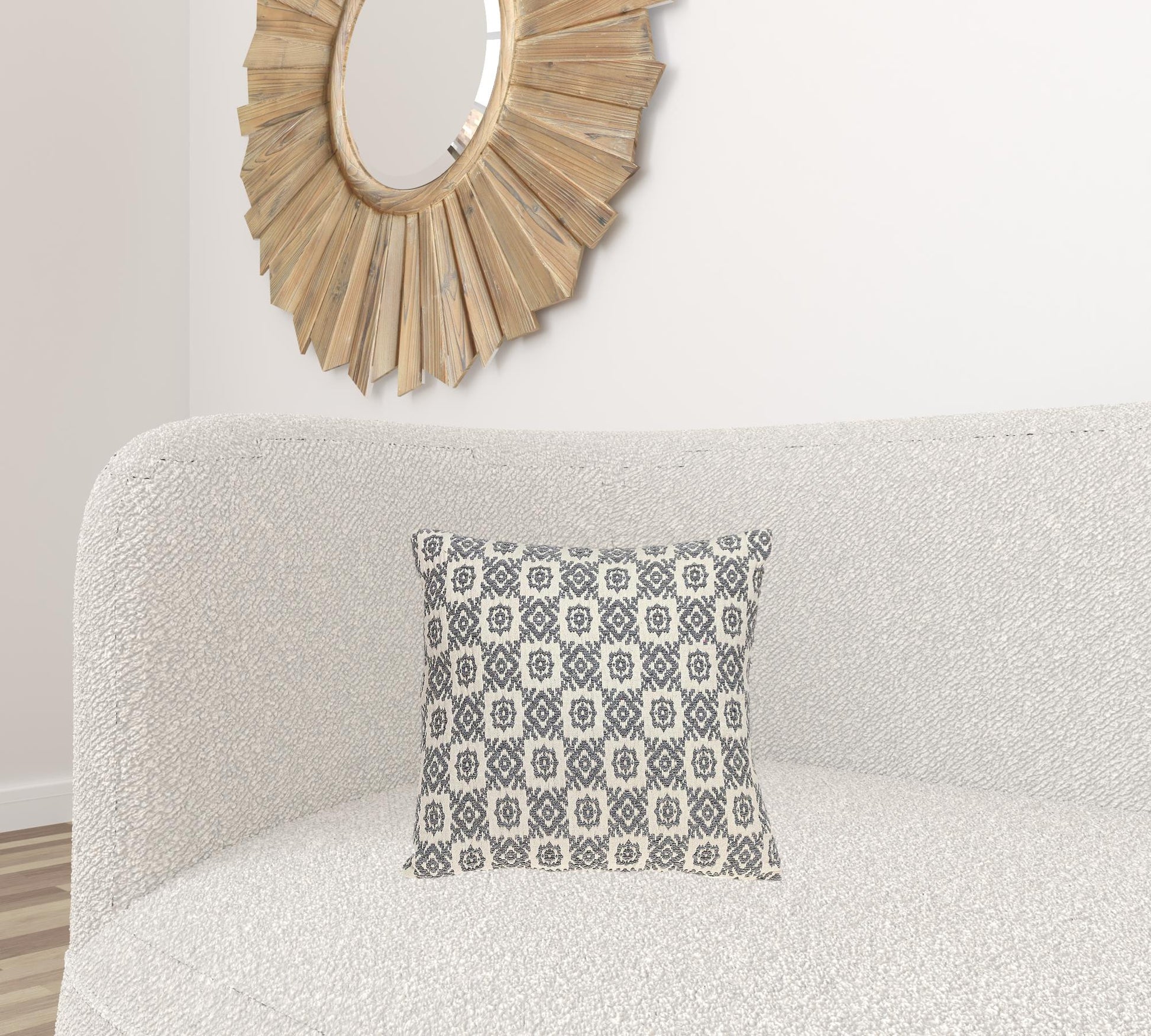 If you have a corner chair that looks lonely, add happiness to it with this Neutral Grey Mosaic Throw Pillow. With grey-colored mosaic embroidery on a neutral-toned pillow background, this simple, classic, elegant piece will look great on any type or shape of chair or sofa. This fluffy decorative pillow is 100% cotton and has solid beige canvas and convenient zipper closure on the back.