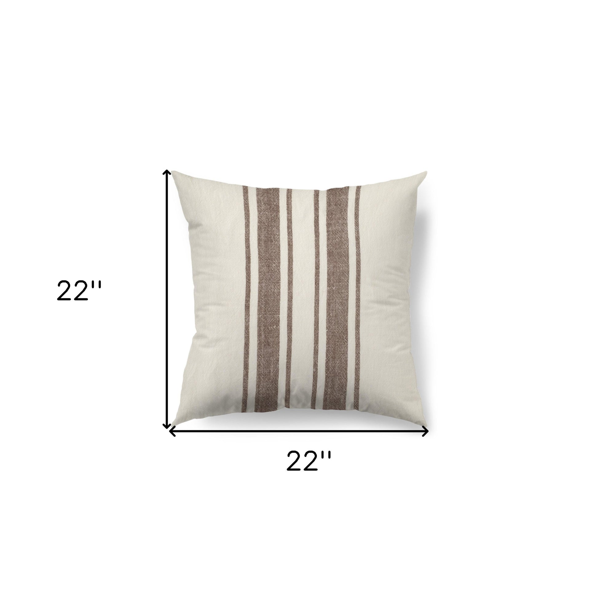 With this off white Pillow Cover with Brown Stripes you can add the perfect finishing touch to your couch. This cushion cover is made highly durable and soft material that provide comfort beyond measure. The design on the cushion features a plain off white background that has two wider brown stripes surrounded by 4 thinner stripes in the center of the cover. The back has a zip closure that ensures your cushion stays in there securely. You can easily clean and wash this cushion cover without any damage or fading of the colors. The neutral color palette will look great on top of any couch, bed or chair you have and go with any interior style you have in your home. 1" H x 22" W x 22" D