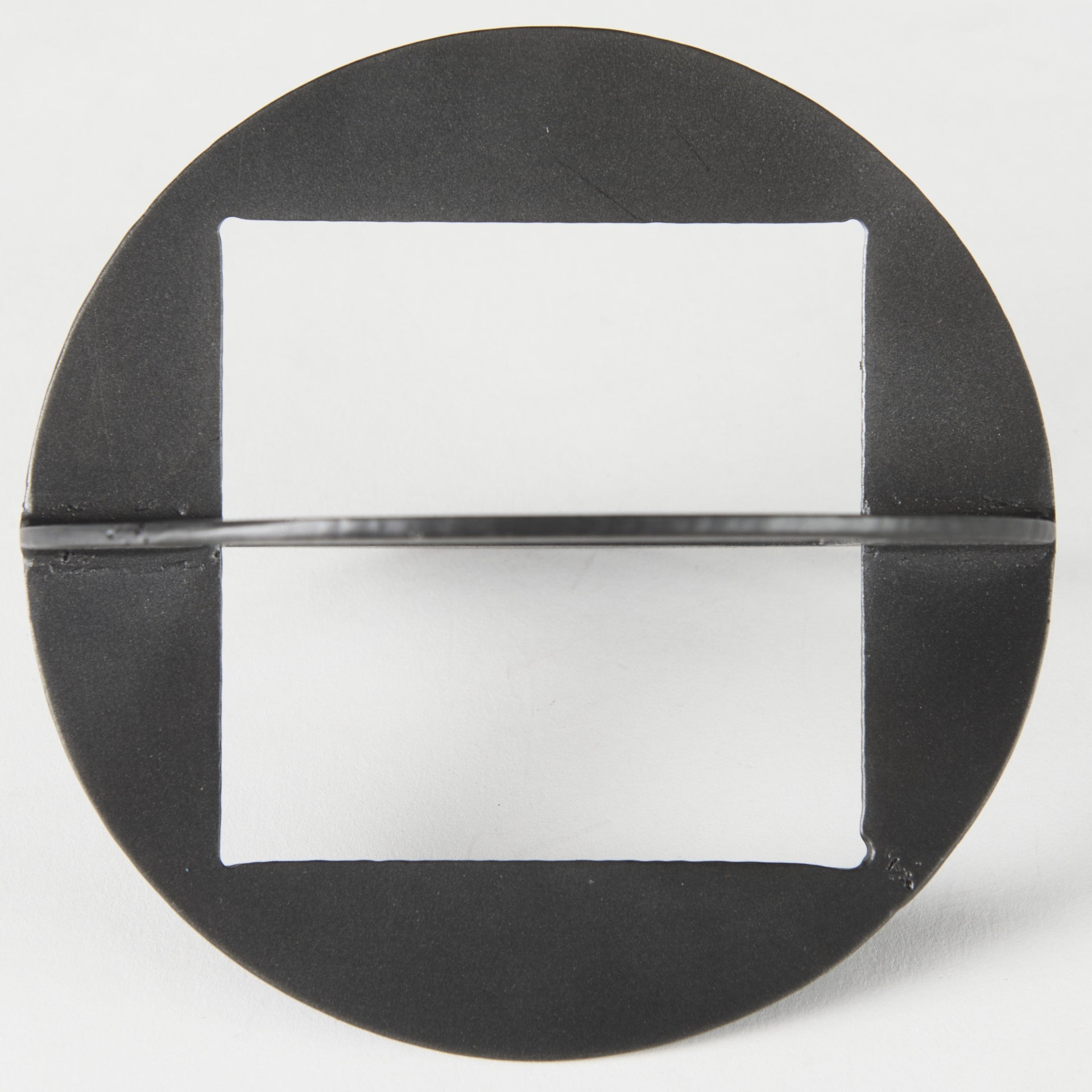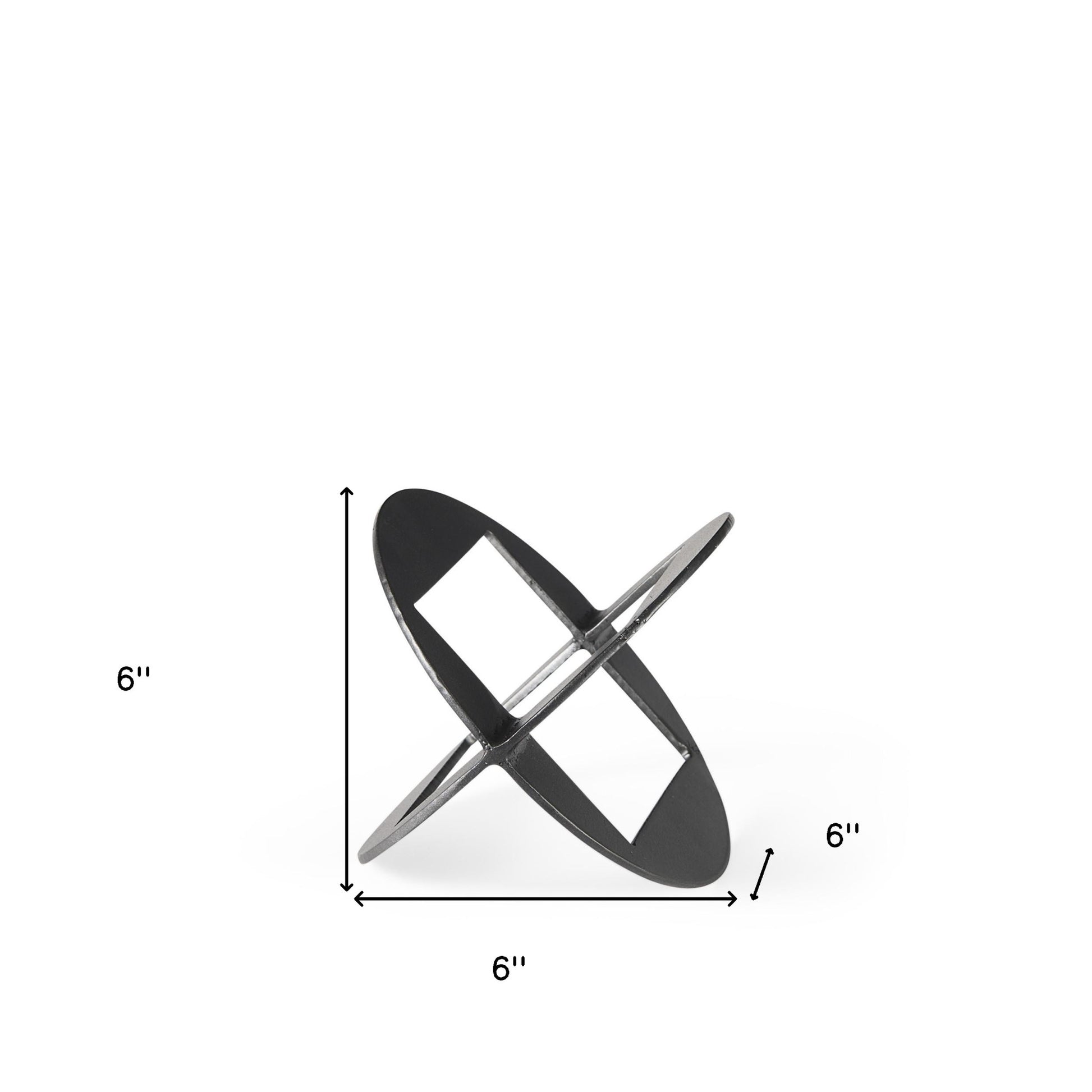 With this Petite Black Metal Geometric Decor Piece you can add just the right touch of unique modern design to the decor in your home. This decor piece is made from solid metal and features two small circle shapes that have square cut outs intersecting at two different points. This intersection creates an X-shaped decor piece that plays with different shapes but still keep its modern and minimal look intact. This decor piece has a matte black finish on it and can be used anywhere in your home no matter what interior style or colors you already have. You can also place this decor piece near a window or a light source and enjoy the slight and elegant shapes that are projected through it. 6" H x 6" W x 6" D