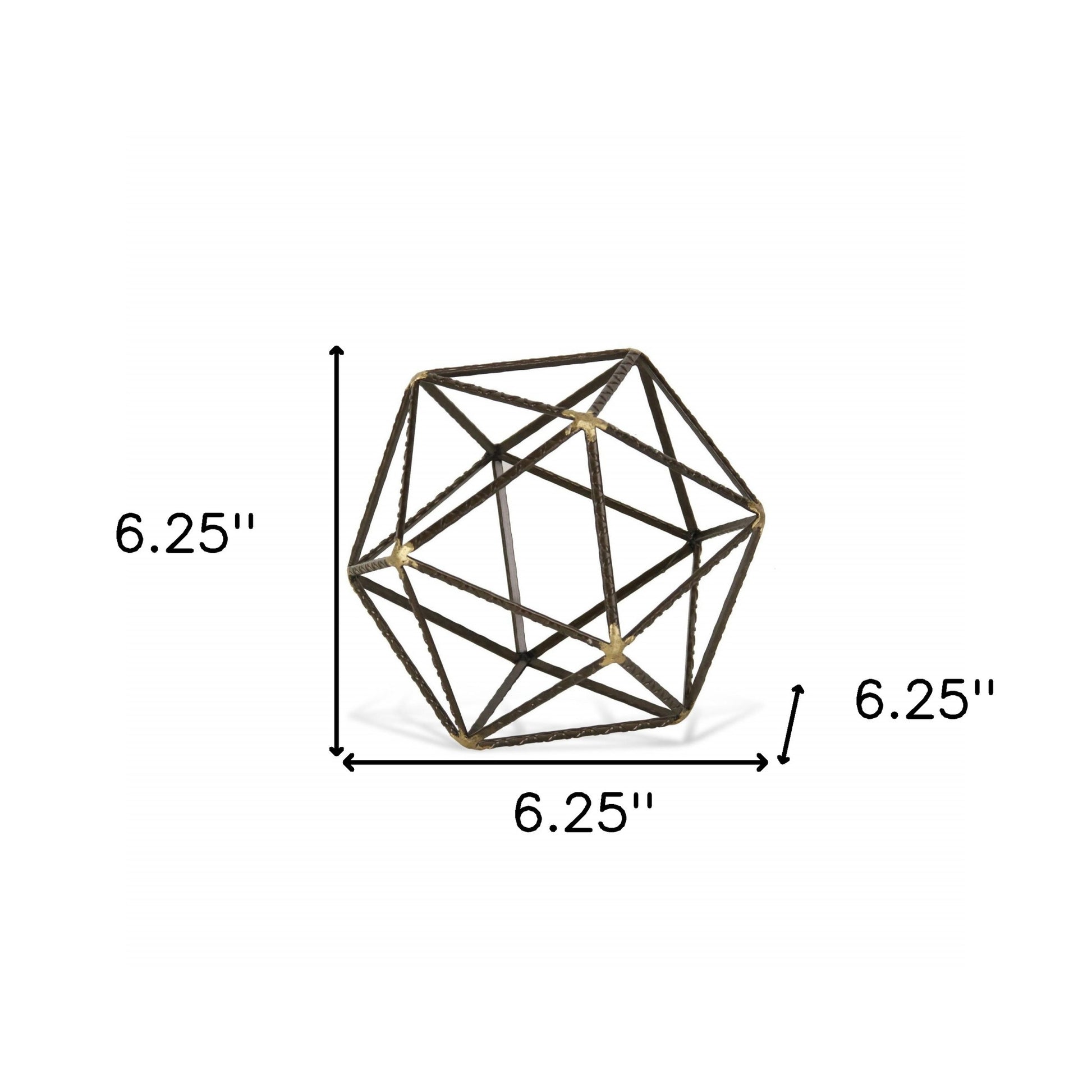 With this Petite Geometric Decorative Sculpture you can add a touch of Minimalist contemporary design to any space in your home. This piece is made of solid metal and is colored to a distressed brown finish. The geometric dice shape has gold colored corners which adds a nice touch of class to the overall look of this piece. Use this piece as bookshelf decor, on your coffee table, or anywhere in your home. You can also group it up with similar decor pieces or use it alone as an accent piece. 6.25" H x 6.25" W x 6.25" D