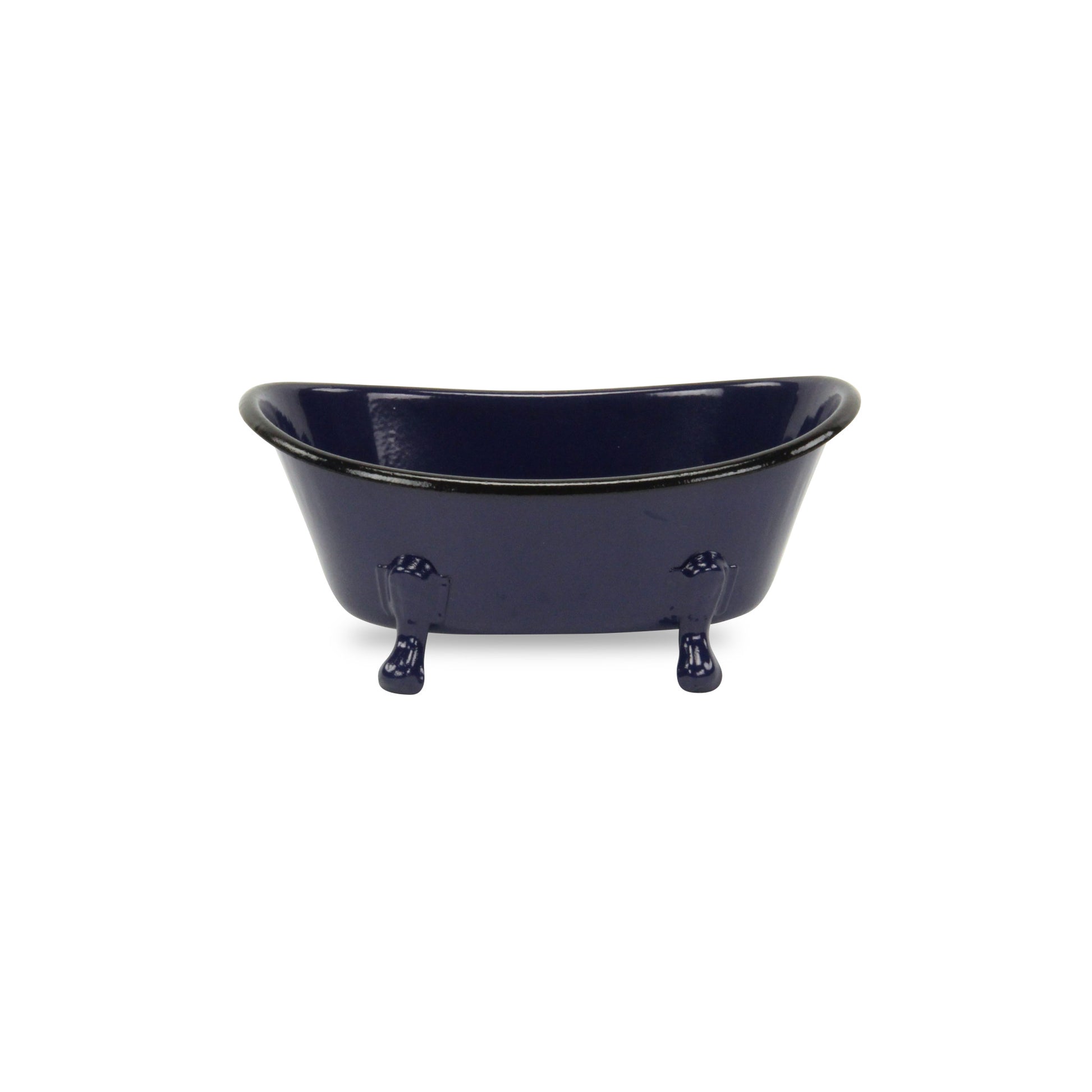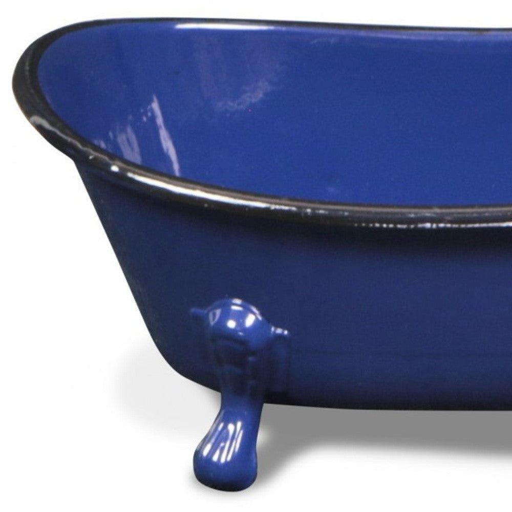 Bring a touch of artistic elegance to your living space with this exquisite Navy Blue Metal Bathtub hand-painted sculpture. Crafted by skilled artisans, this handmade masterpiece showcases a clawfoot tub shape that will bring a unique vintage vibe to your space. Its high-quality metal construction ensures durability, while the captivating blue color adds a vibrant pop to any room. Whether displayed alone or paired with other decorative accents, this sculpture is guaranteed to create a perfect aesthetic ambiance in your home. 3.25-inch H x 7-inch W x 4-inch D