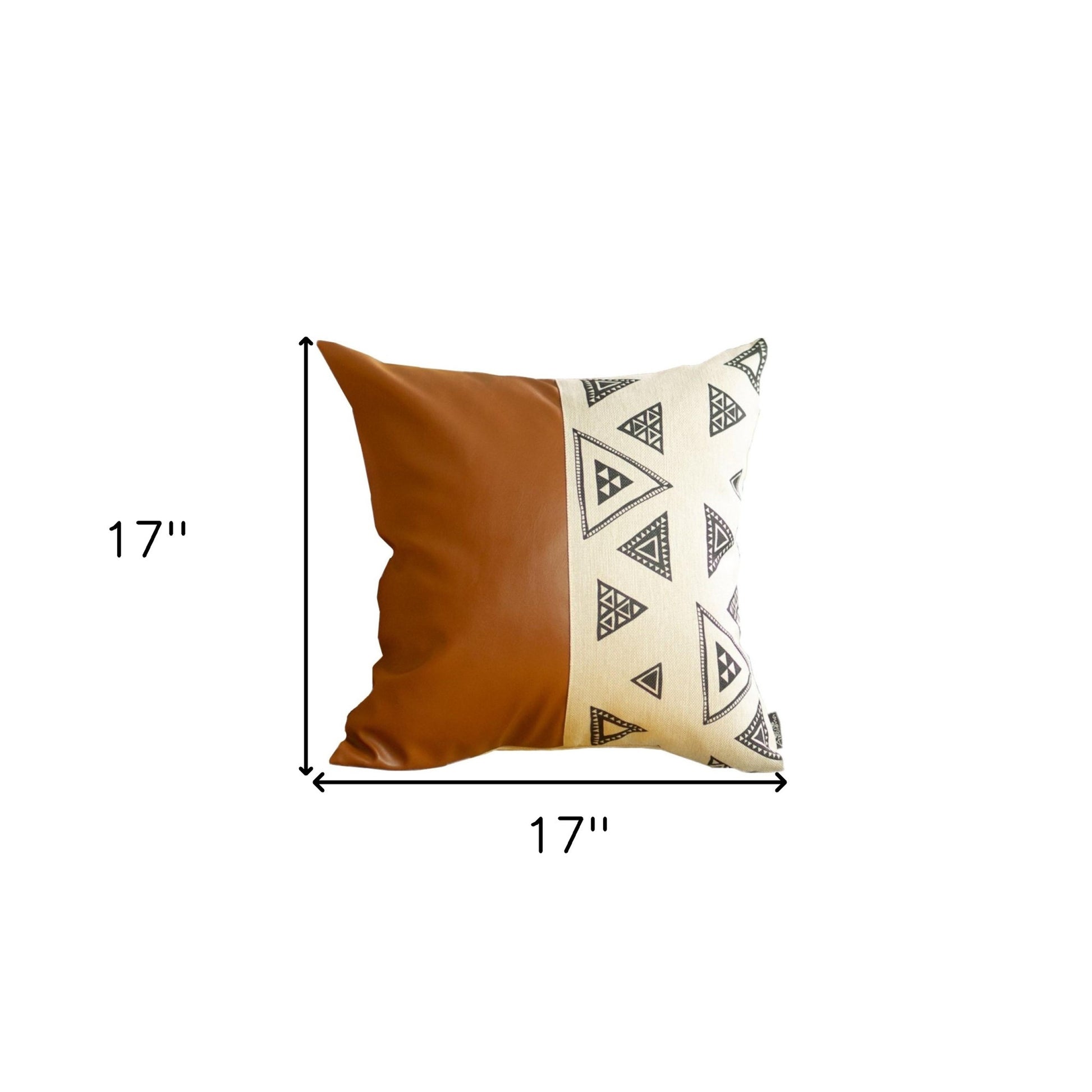 Playful Triangle And Brown Faux Leather Pillow Cover