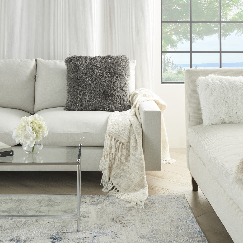 Plush Charcoal Shag Accent Throw Pillow