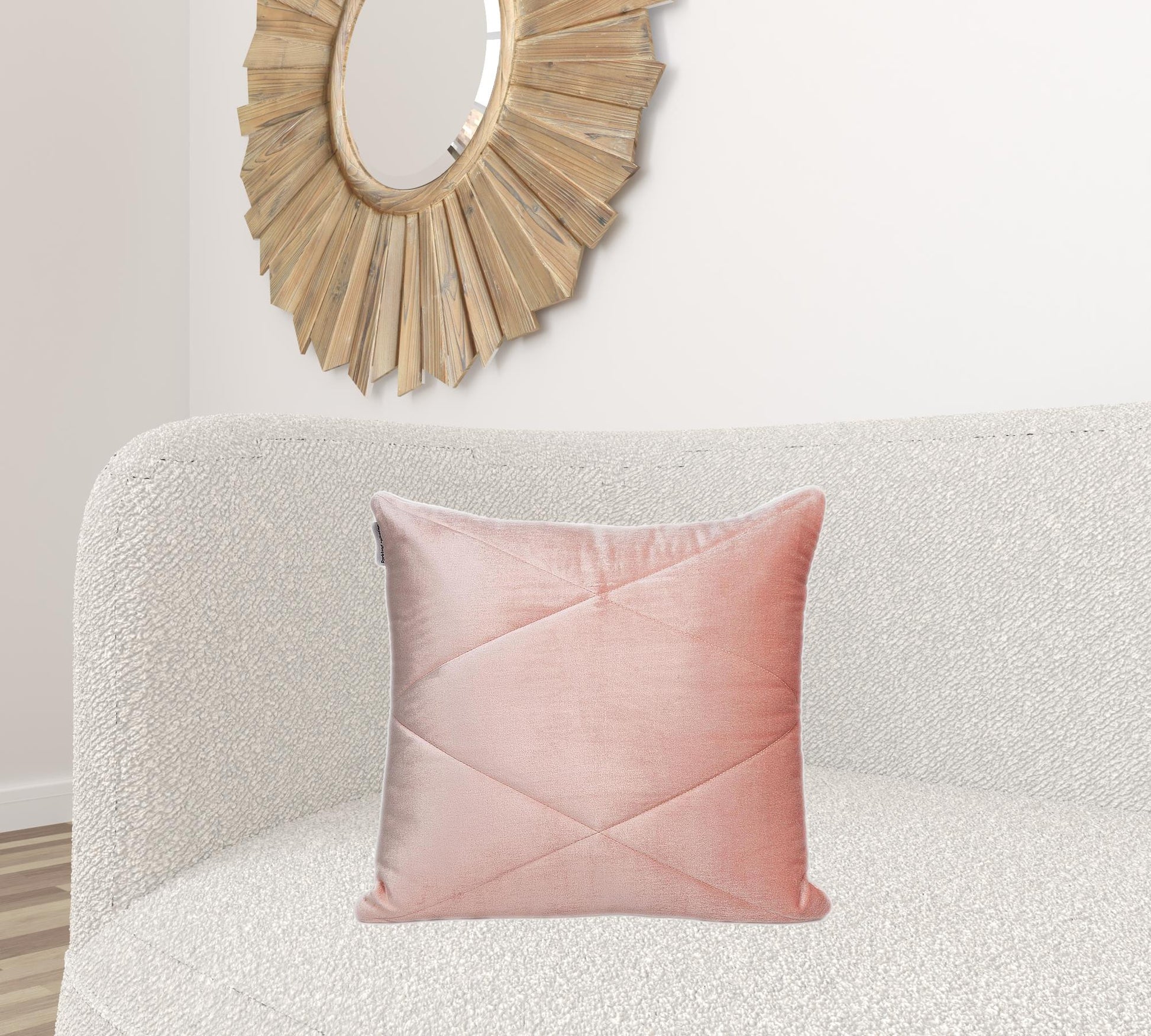 Accent your dull space with the Quilted Pink Velvet Throw Pillow and add a dash of luxury to your home. The quilted geometric diamond pattern enhances the soft and fluffy texture of the pillow portraying a sense of warmth and comfort in your home. Although the back is plain, it exists in the same solid color tone and stylishly conceals a hidden zipper that makes for easy maintenance. Perfectly sized, this elegantly fabricated pillow can be paired with a variety of styles and textures to spruce up any kind of monotonous spaces. 20" x 20" x 4"
