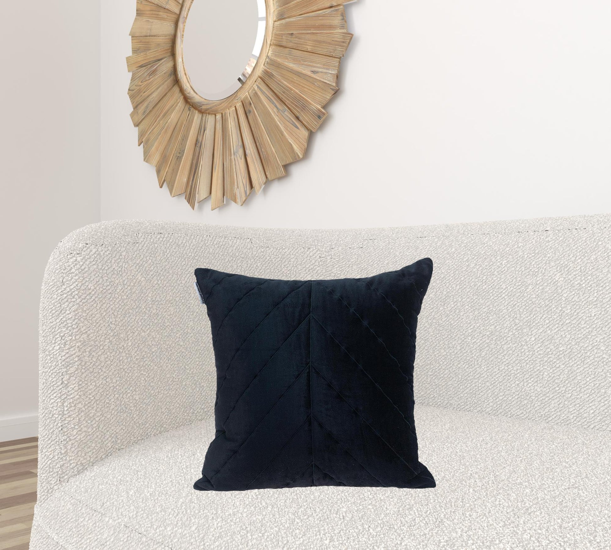 Simple, classic and elegant the Quilted Velvet Arrows Black Decorative Throw Pillow is the quintessential model when it comes to throw pillows. Flawless in design, the pillow has a symmetrically stitched geometric design on plush velvet that portrays a refined and classic look. The lightweight and soft nature of the pillow not only provides textured comfort but also skillfully conceals a hidden zipper under the bold colored flap that is ideal for removal and inserting. Elevate the luxurious level of your home and bring a little character with this sensational and stylish tufted throw pillow. 20" x 20" x 4"
