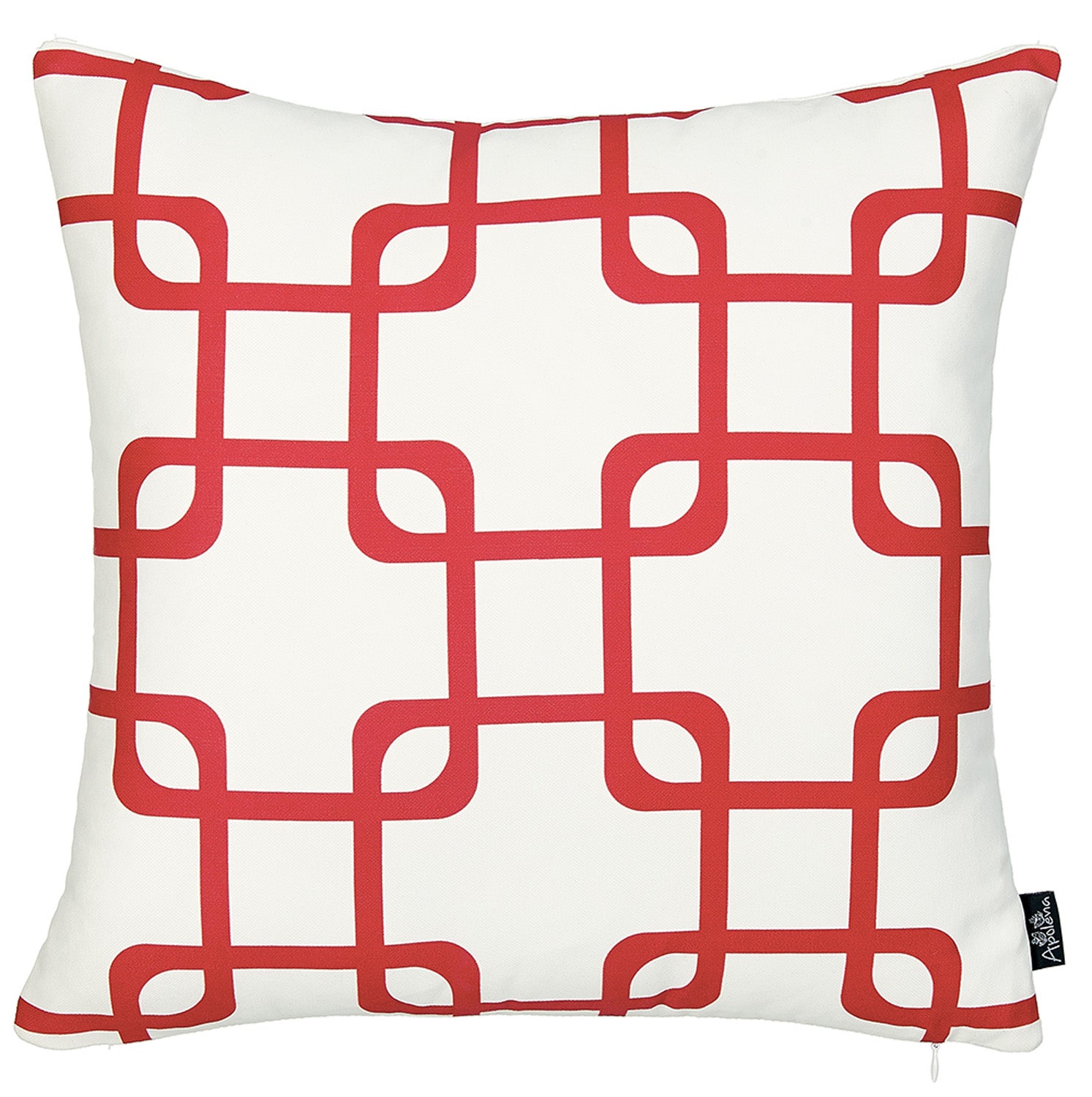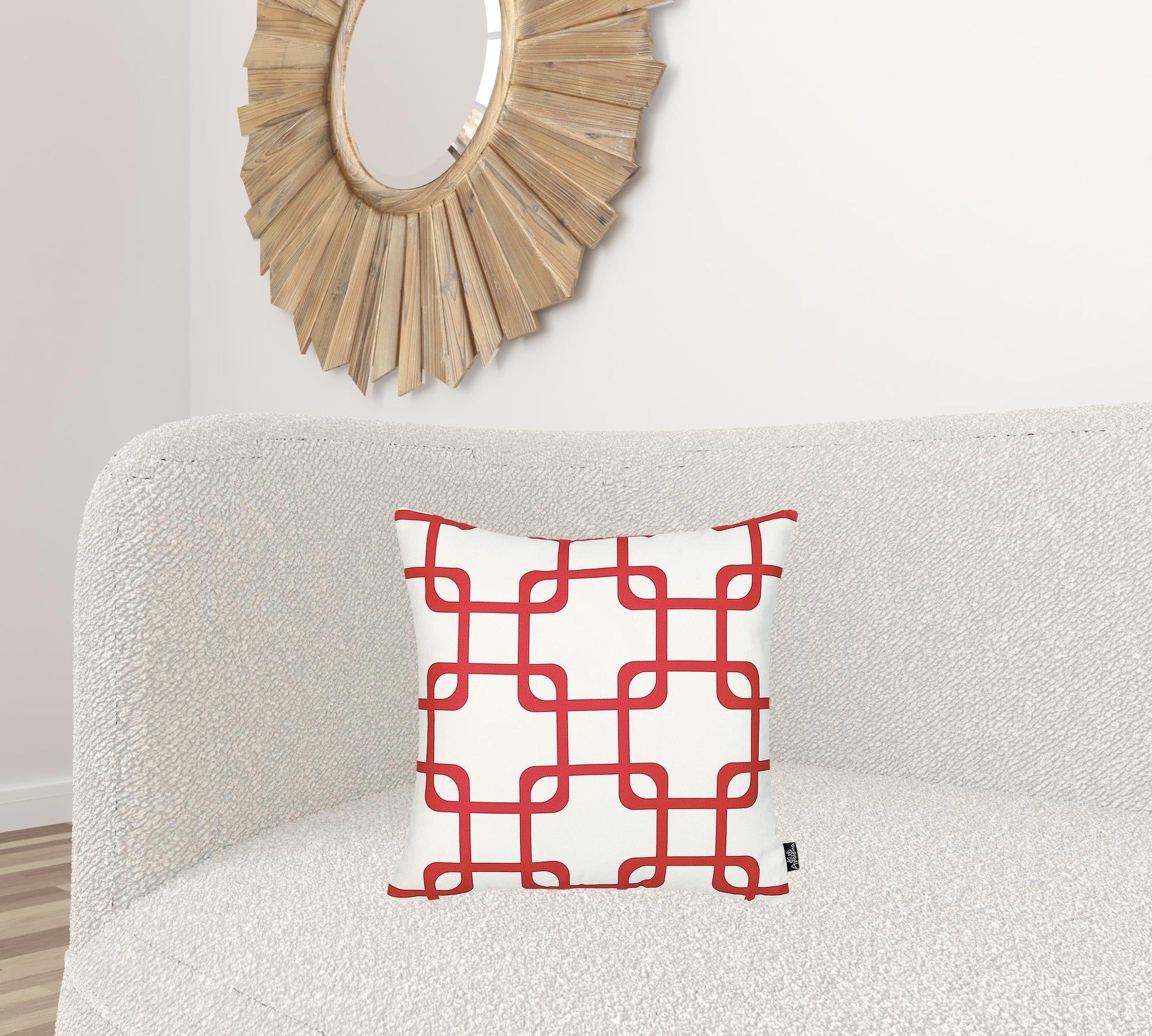 Red And White Geometric Squares Decorative Throw Pillow Cover
