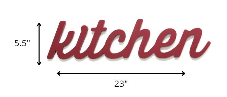 Add spice to the setting in your kitchen with this striking typography wall decor. It is beautifully crafted and hand-painted to showcase the word "Kitchen" . This wall decor features a pop of Red to bring some sizzle to your space. Comes ready to hang and add some color and decoration to your kitchen. 23" X 0.5" 5.5".