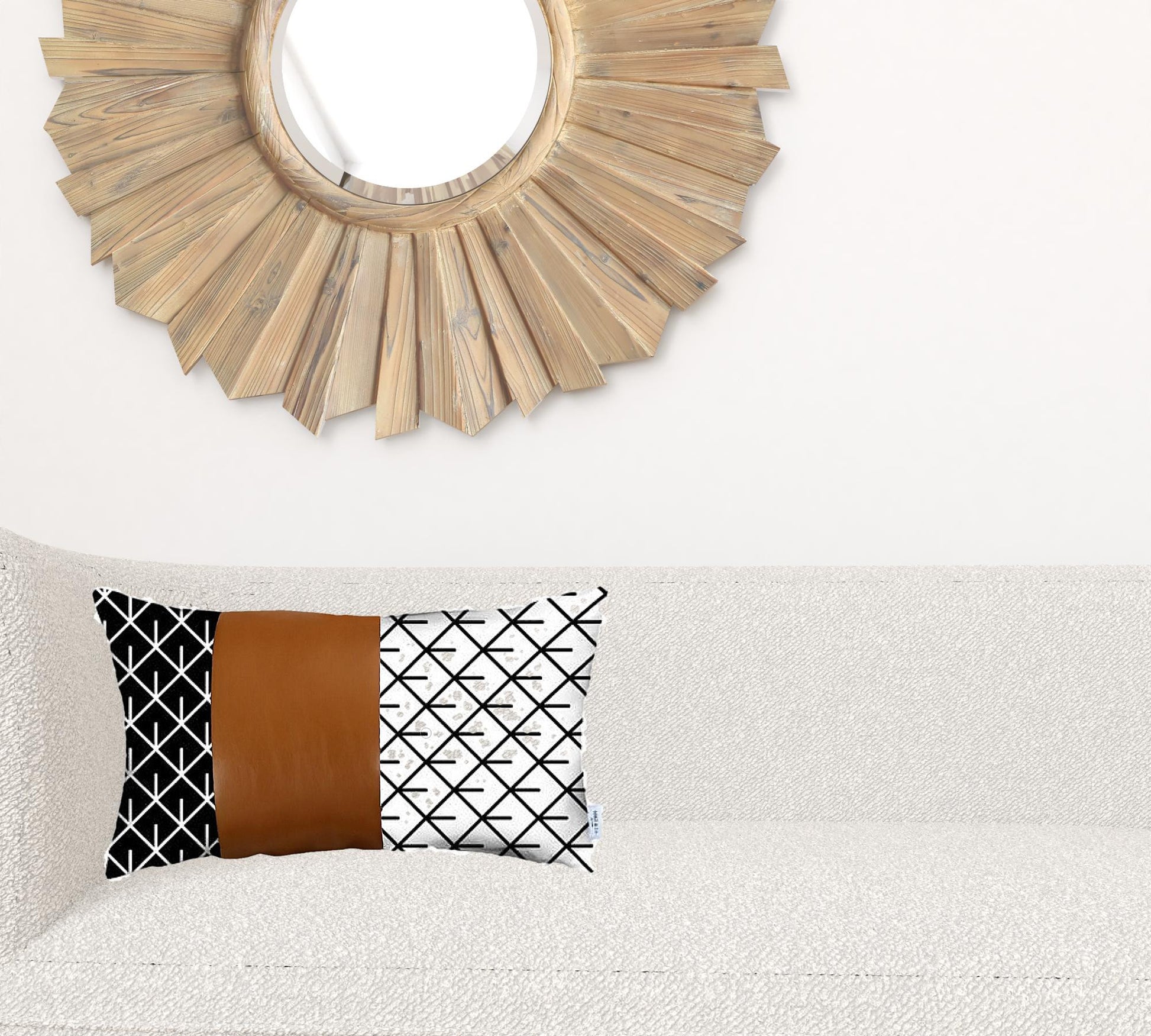 Upgrade the interior of your living space with this Reverse Black and White Exclusive Pattern and Brown Faux Leather Lumbar Pillow Cover that is bound to grab your guests’ attention. The vegan faux leather upholstery in the middle with pure polyester in distinctive designs on two sides gives it a classic traditional look to uplift any decor. The super soft and cozy feel of this lumbar pillow cover comes with a hidden zipper all-around, giving it a unified impression. Be it for decorative purposes or comfort, this oblong lumbar pillow cover will be a great addition to your home. 12" x 20" x 0.08”