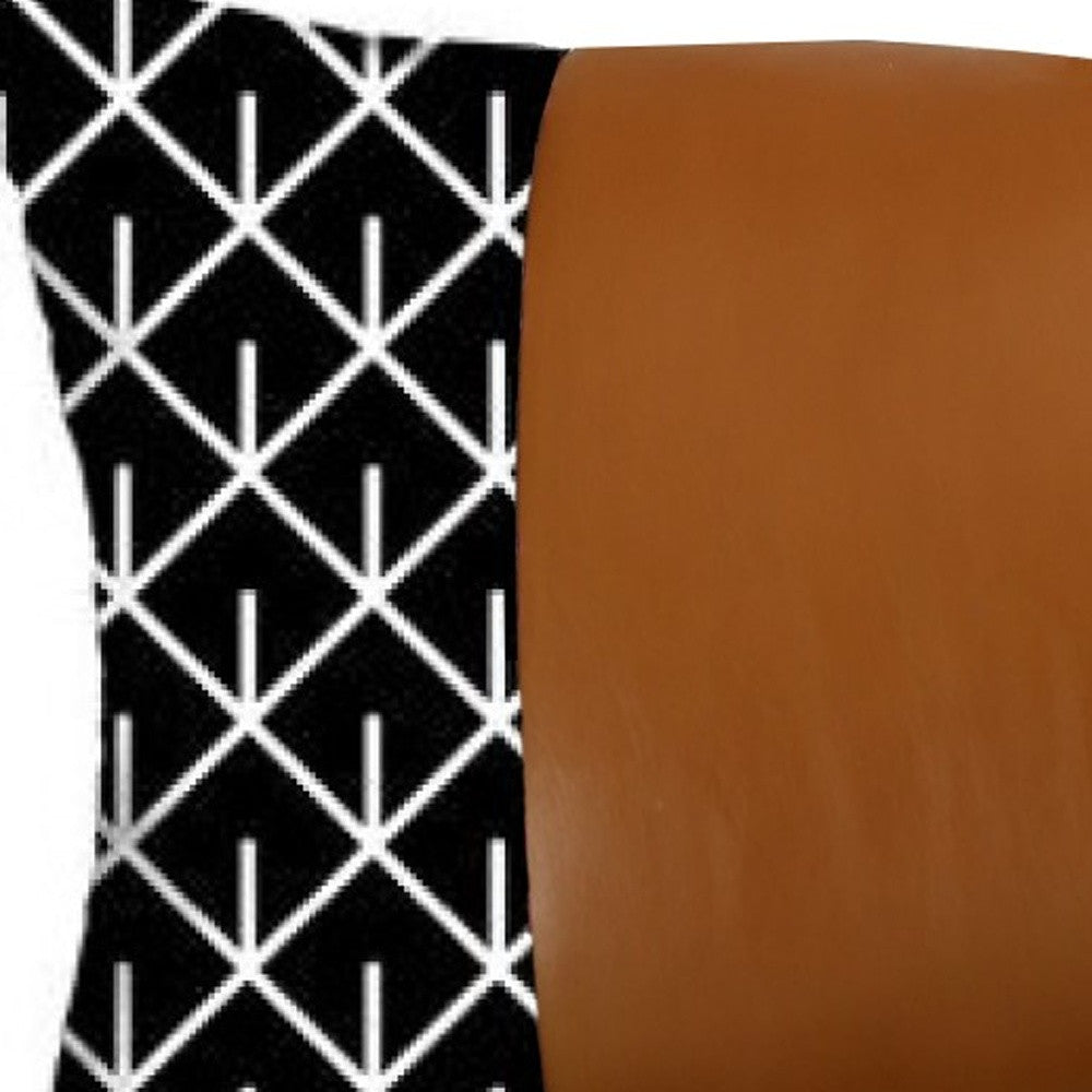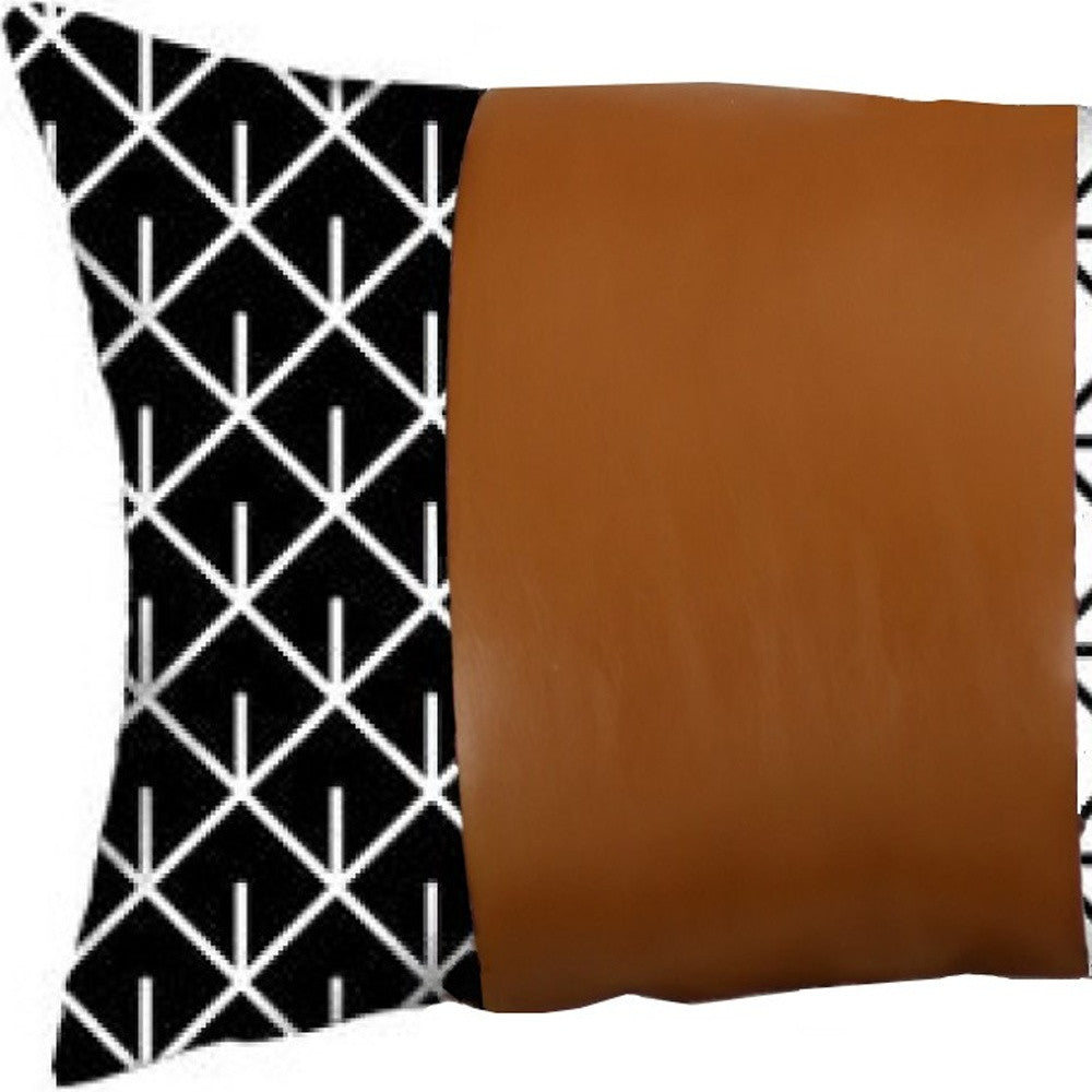 Reverse Black And White And Brown Faux Leather Lumbar Pillow Cover