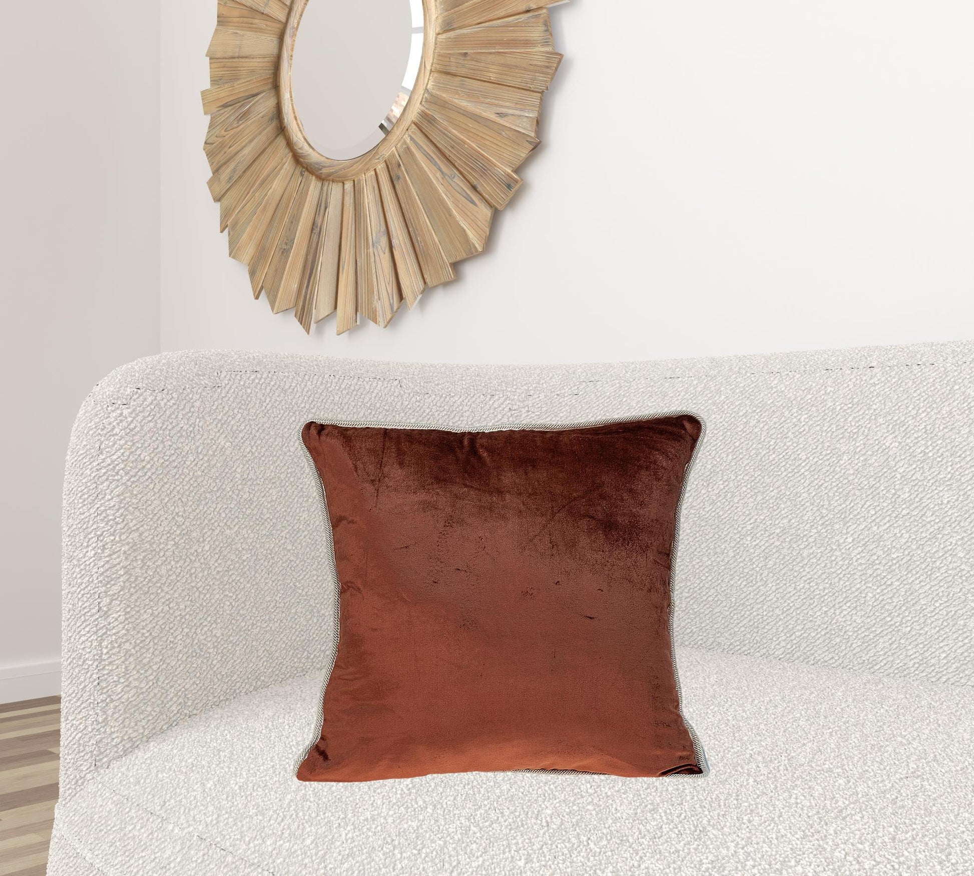 Style meets comfort with the Reversible Multi Brown Square Velvet Throw Pillow. Crafted from a selection of plush materials, accentuate your home with this unique dual tone vision and bring a little personality to your space. The beautiful bold colors on both sides are emphasized with a fresh breeze of linen cord piping that adds a subtle highlight to this work of art. The sheer glossy shine of the delicate velvet adds a soft and elegant touch, accenting the aesthetic luxuriousness of any space. 20" x 20" x 4"