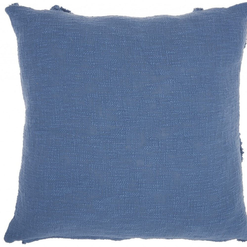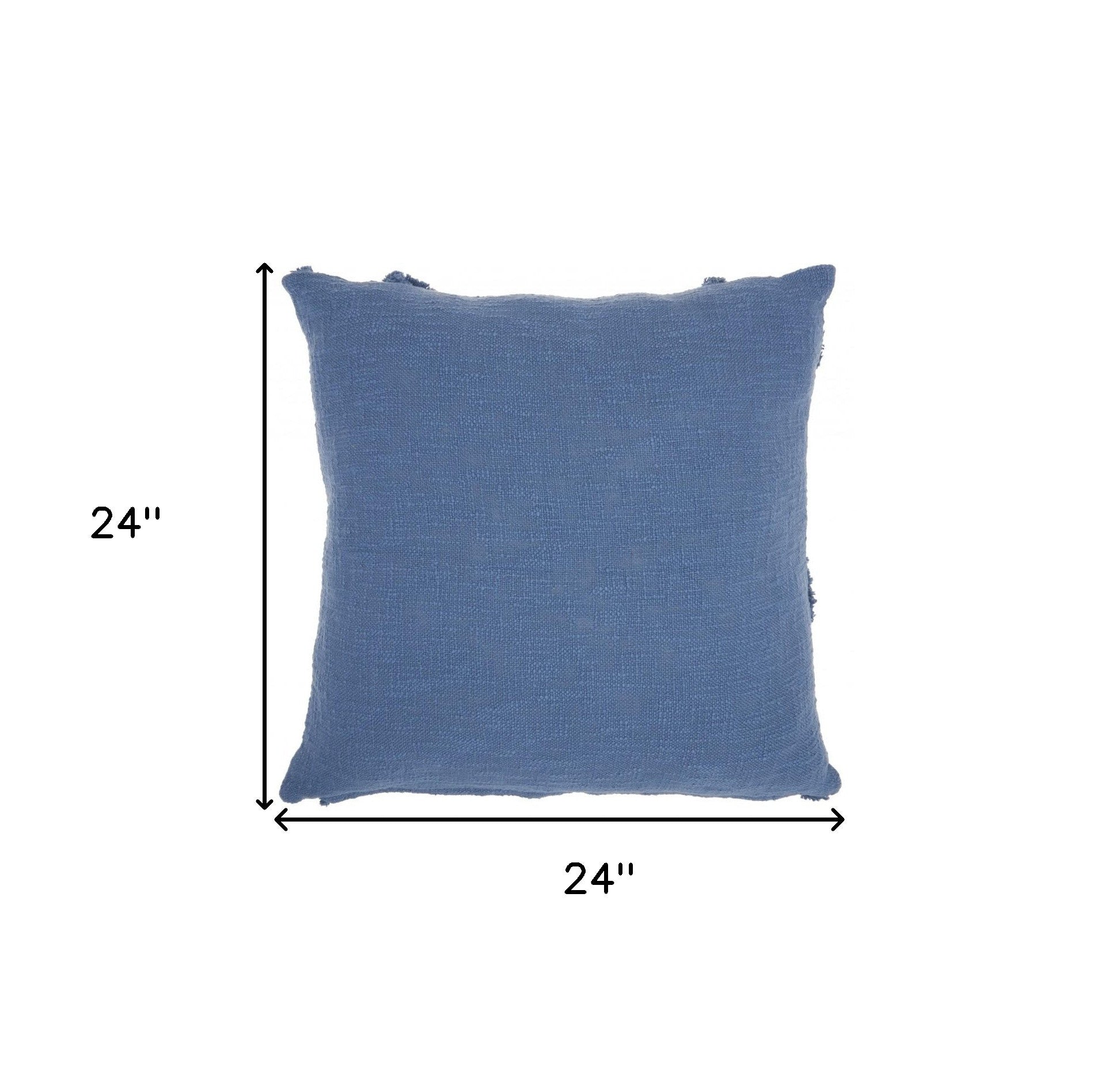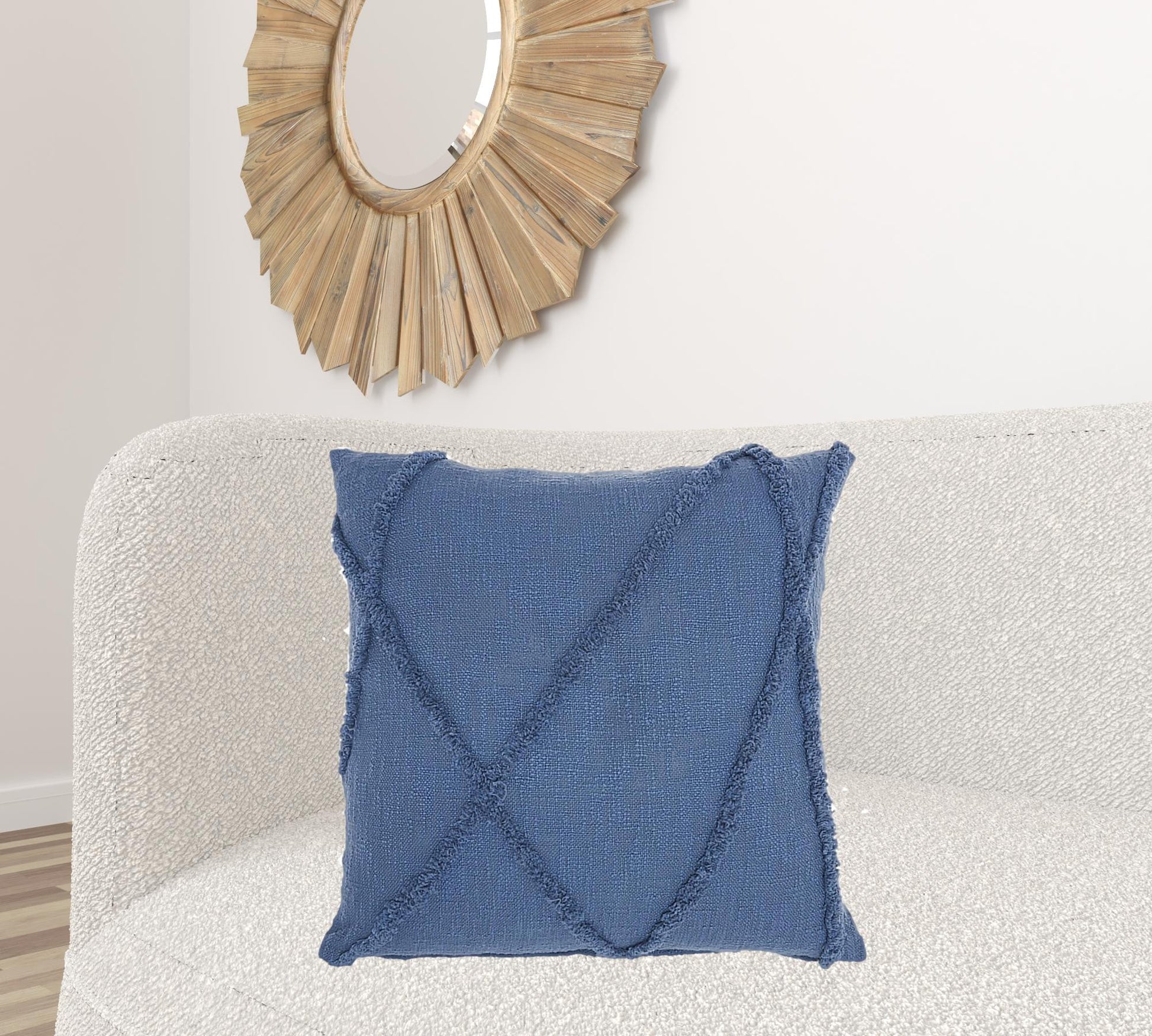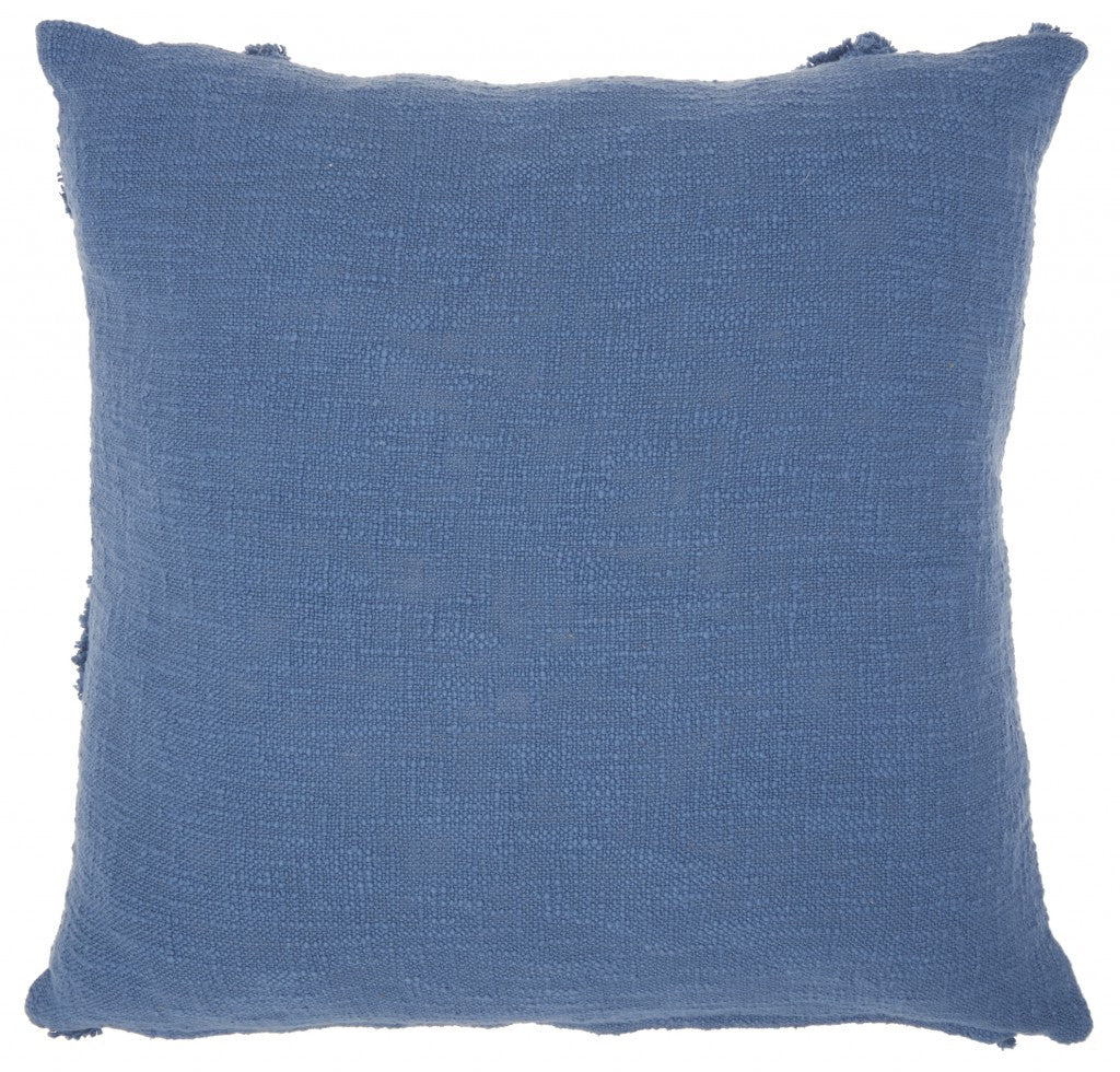 With this Royal Blue Shaggy Detail Throw Pillow you can add the perfect mix of design and comfort to your home. This pillow has a square shape and is covered in a textured royal blue colored fabric. On top of this fabric there are shaggy thread lines in a geometric pattern that are in the same royal blue color. The same colored details add a touch of depth and dimension to the overall look of this pillow and will elevate any seating space in your home. You can use this pillow to style up your bed, your couch, or any other seating area in your home and it will work with any existing colors or decor styles you may already have. 5" H x 24" W x 24" D