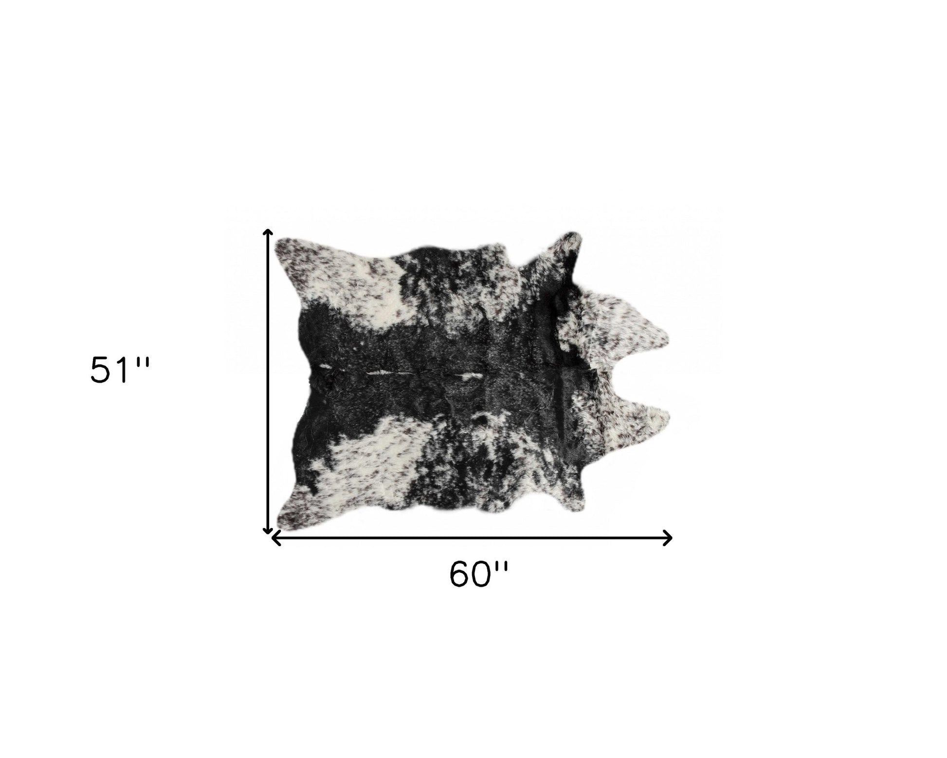 Add great coloration and comfortable texture to your space with this s&p black white animal print area rug. This novelty shape rug in s&p black white features a animal print that combines a good looking print with a unique shape. The mix of shape, color, and design gives this rug refreshing visual interest. Handcrafted by skilled artisans, this natural cowhide rug is genuine and unique. No two will be exactly alike. Place this area rug against a hardwood or tile floor and it will enliven your living space with style and sophistication. 0.8" H x 60" W x 51" D
