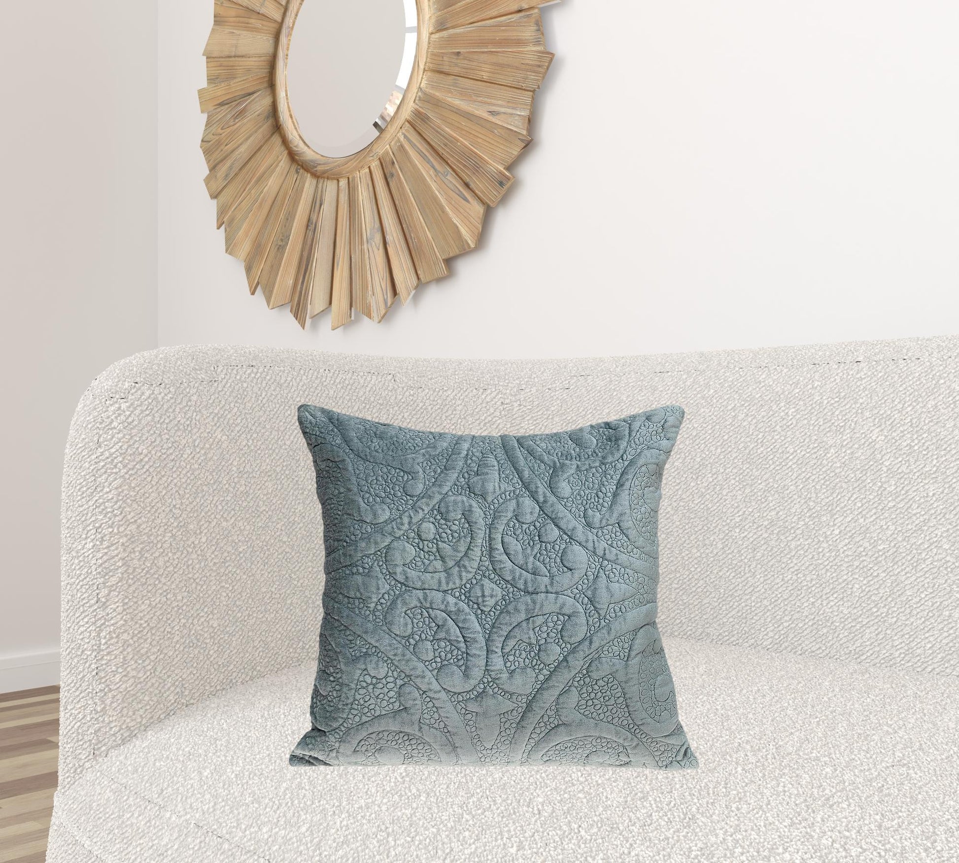 Seafoam Gray Quilted Velvet Square Throw Pillow
