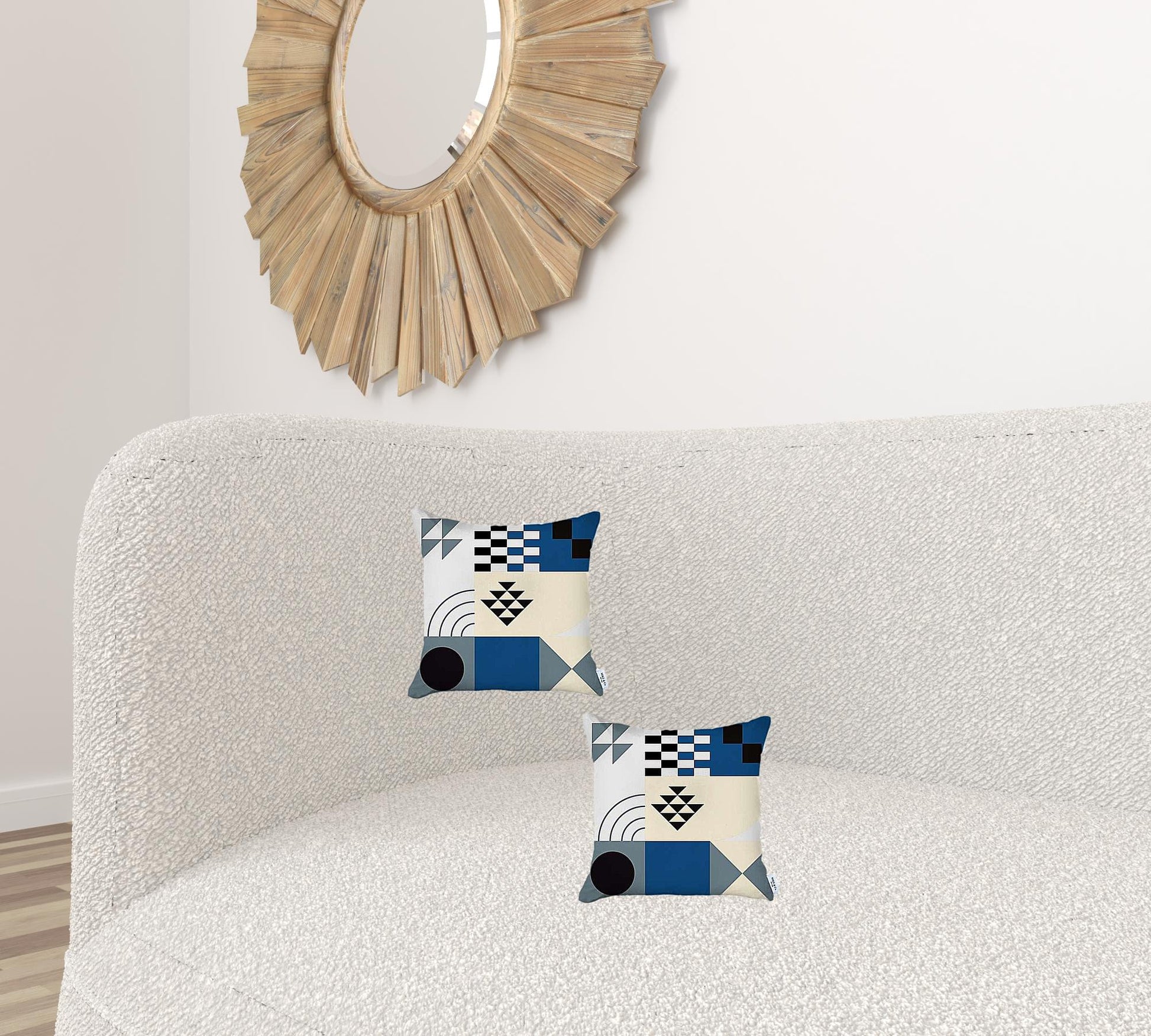Add fun and lively elements to your bohemian setup with this Set of 2 Blue and Ivory Printed Pillow Covers while bringing new meaning to modern decor. This cover’s visual appeal comes from its multiple geometric designs and creative use of blues, blacks, and grays on a soft white base. Handmade by skilled Turkish craftsmen, this beautiful cover is made with OEKO-TEX Standard 100 certified polyester fabric to make sure your living space looks beautiful throughout the years. The hidden zipper closure helps give the cover a uniform and seamless look. Marks and blemishes should be taken care of with simple spot cleaning to help keep this piece look pristine for ages. Pair this set of 2 covers with neutral or bold colors and watch the design speak for itself in your living space. 18” x 18” each. Set of 2.