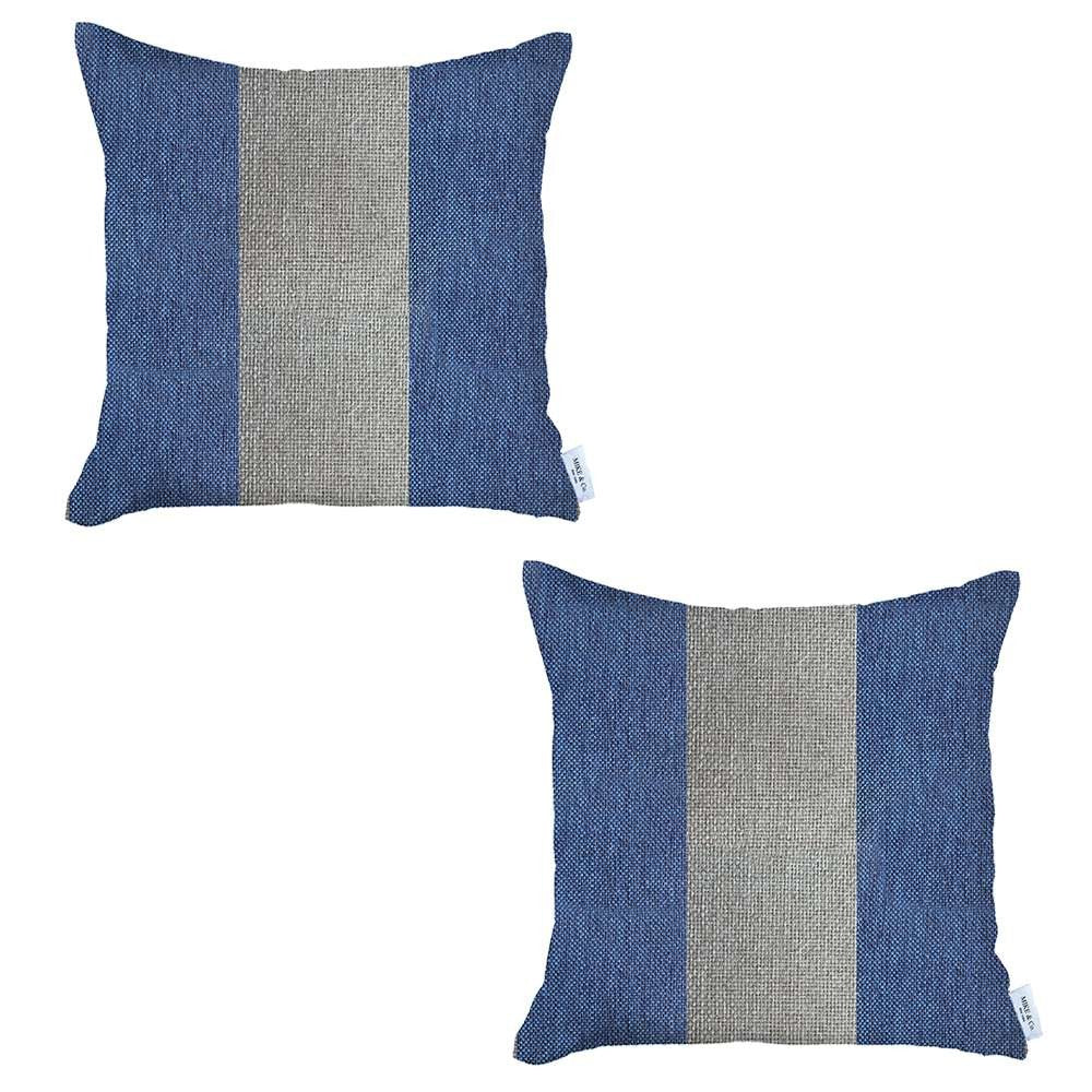 Add depth and timeless elegance to your modern living space with this Set of 2 Blue and White Center Pillow Covers. Being the color of oceanic bliss, the deep blue base looks spectacular with that ivory white midsection to accentuate a sense of tranquility in the room. Made in Turkey with 100% polyester fabric which is OEKO-TEX Standard 100 certified to make sure highest product safety. This pillow cover should only be spot cleaned to remove stains and keep its sheen for long. The all-around zipper closure provides a seamless finish that feels super smooth and unified on the touch. Transform your living room with this unique set of 2 pillow covers that will grab the attention of the guests as soon as they step into your home. 18” x 18” each. Set of 2.
