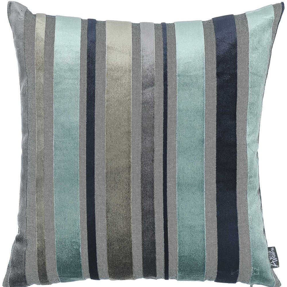 Easily update and refresh your home with this Variegated Stripe Decorative Throw Pillow Cover. This fun pattern of varying size striped in shades of blue, gray, aqua, and black and white will be a fun way to add some fashion and elegance to a room setting. A hidden zipper closure provides a clean and seamless look all the way around. Made of brushed polyester velvet, this pillow is luxuriously soft and comfortable. 17" X 17" each. Set of 2. Inserts are not included. Machine Wash Cold Separately, Gently Cycle Only, No Bleach, Do Not Tumble Dry, Do Not Iron.