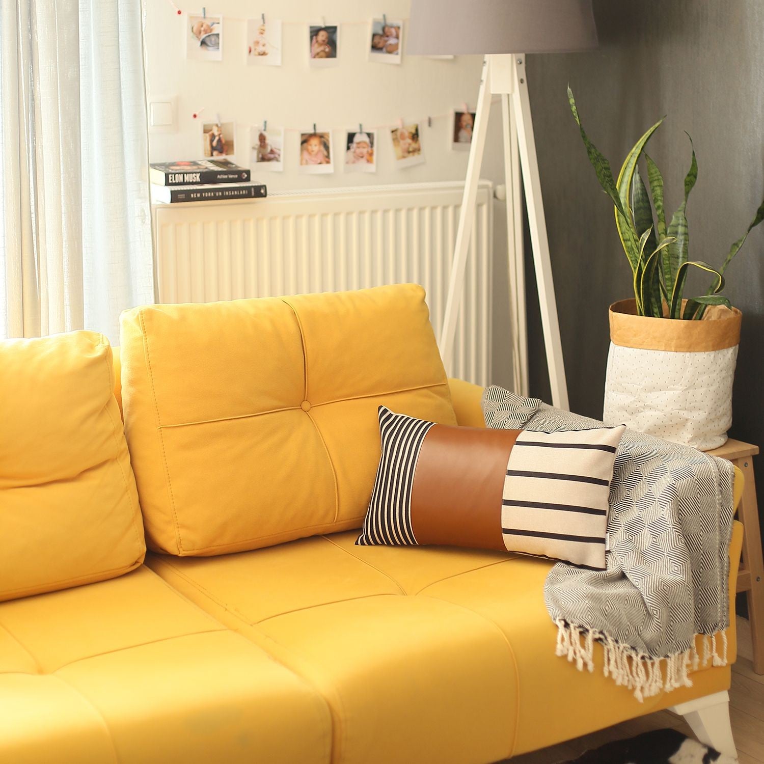 Emphasize an earthy vibe into your home with this Set of 2 Geometric and Solid Throw Pillow Covers that feature a warm-toned palette to add a sense of warmth into your home. This set features a solid brown square cover paired with a lumbar pillow cover flaunting black and white geometric stripes with a leather strap to accentuate a boho-chic style. Crafted with care by Turkish artisans, these pillows are made of 100% polyester and vegan faux leather for enhanced durability to serve you long while holding its color intensity to retain the immaculate look for years to come. The all-around zipper closure provides a seamless finish that feels super smooth and unified on the touch. This set of pillow covers will anchor your living room with style and coziness. 18” x 18” x 1” & 12” x 20” x 1”. Set of 2.