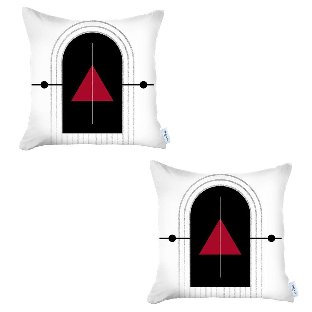 In line with modern visionary artwork, this Set of 2 Red Geometric Printed Pillow Covers will uplift your interior design with its modern appeal. Flaunting a quad-colored symphony in a modern graphic, the bright red center triangle rests inside a distressed black accent with gray-toned linework giving it a captivating look. The cover feels never-ending with the zippers being kept out sight in hidden closures. Handcrafted with care by Turkish artisans, premium 100% polyester fabric with OKEO-TEX Standard 100 certificate is used to create this set of pillow covers that emphasizes comfort, safety, and longevity. Worries about durability and color intensity are a thing of the past because easy spot cleaning is enough to keep the marks and blemishes away. Your ideal modern living space will achieve its best form with this classy set of 2 pillow covers. 18” x 18” each. Set of 2.