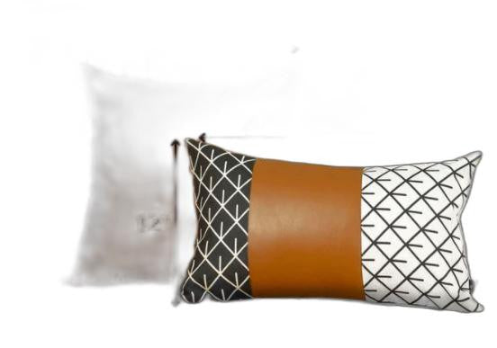 Flaunting an earthy color palette with rich bohemian essence, this Set of 2 Rustic Brown Geometric Throw Pillow Covers will give your living space a calm and relaxing touch. This set comes with a square pillow cover in a shiny brown finish and a lumbar pillow cover with alternating geometric patterned monochromatic base flanking a bold brown strap for visual intrigue. Expertly crafted by Turkish artisans, these pillows comprise polyester, Pvc, and Pu for optimum durability while being OEKO-TEX Standard 100 certified to ensure the highest product safety. The seamless feel comes from the all-around hidden zipper closure that gives the cover a unified look. Bring home this stunning set of throw pillow covers to give your living space a touch of bohemian grace. 18” x 18” x 1” & 12” x 20” x 1”. Set of 2.